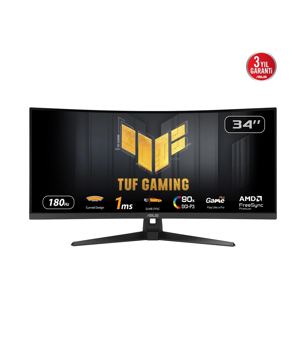 - ASUS TUF Gaming VG34VQ3B. Display diagonal: 86.4 cm (34"), Display resolution: 3440 x 1440 pixels, HD type: UltraWide Quad HD, Display technology: LED, Response time: 1 ms, Native aspect ratio: 21:9, Viewing angle, horizontal: 178°, Viewing angle, vertic