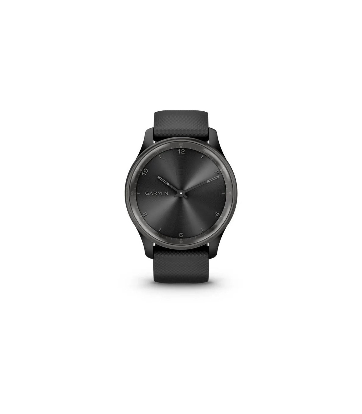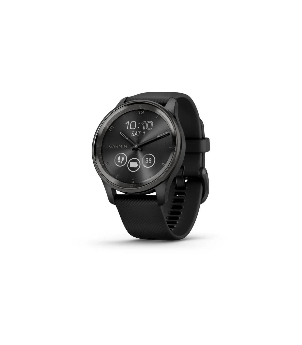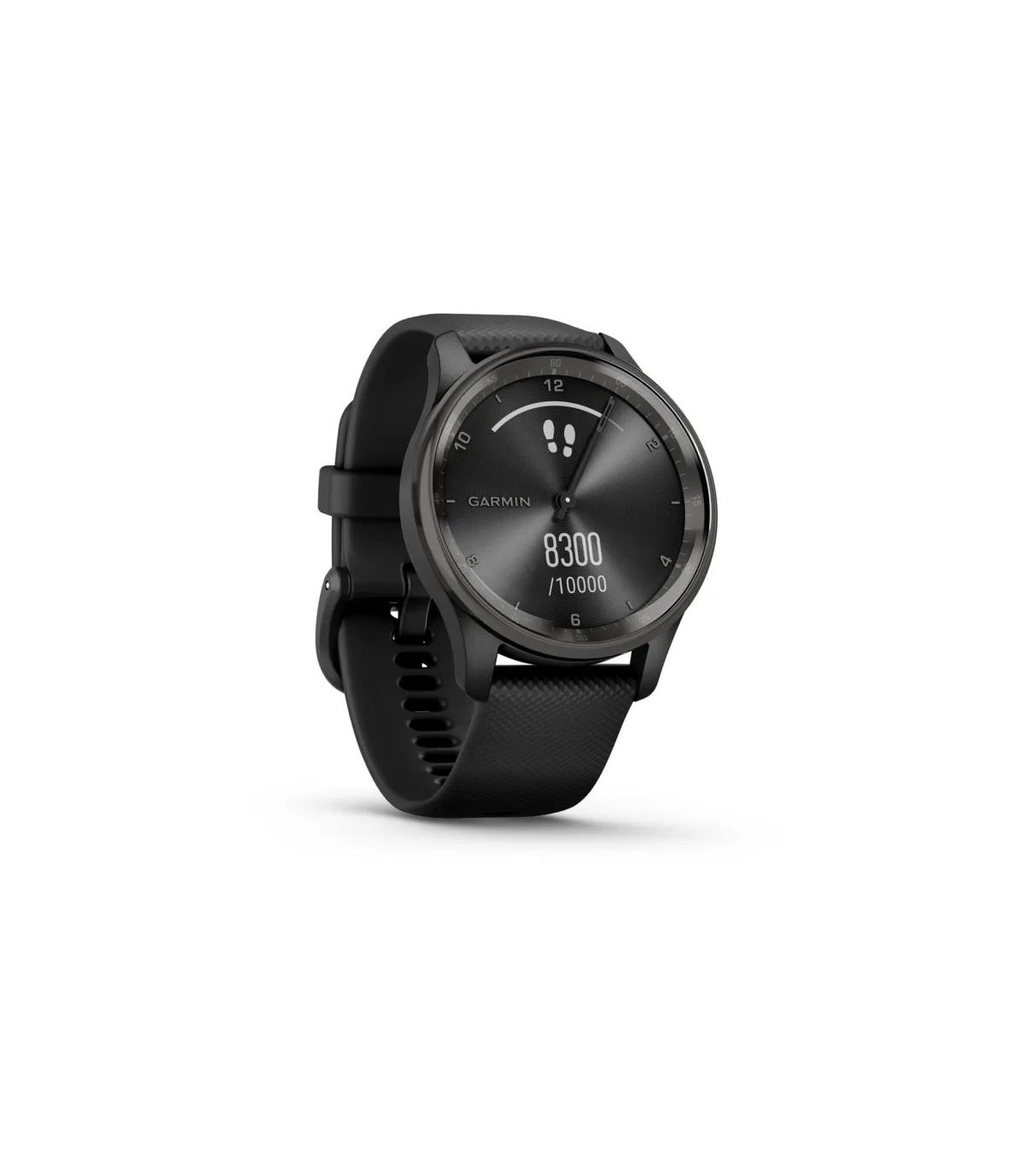 - Garmin vivomove Trend. Display technology: LCD, Display resolution: 254 x 346 pixels, Touchscreen. GPS (satellite). Weight: 28.3 g. Waterproof up to: 50 m, Band material: Silicone, Band colour: Black
