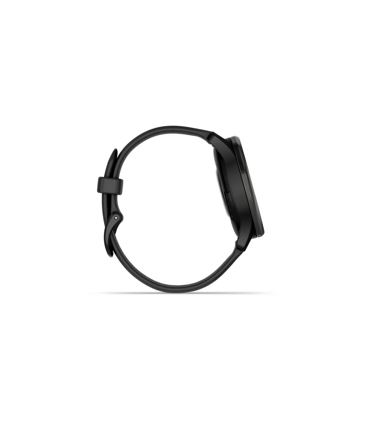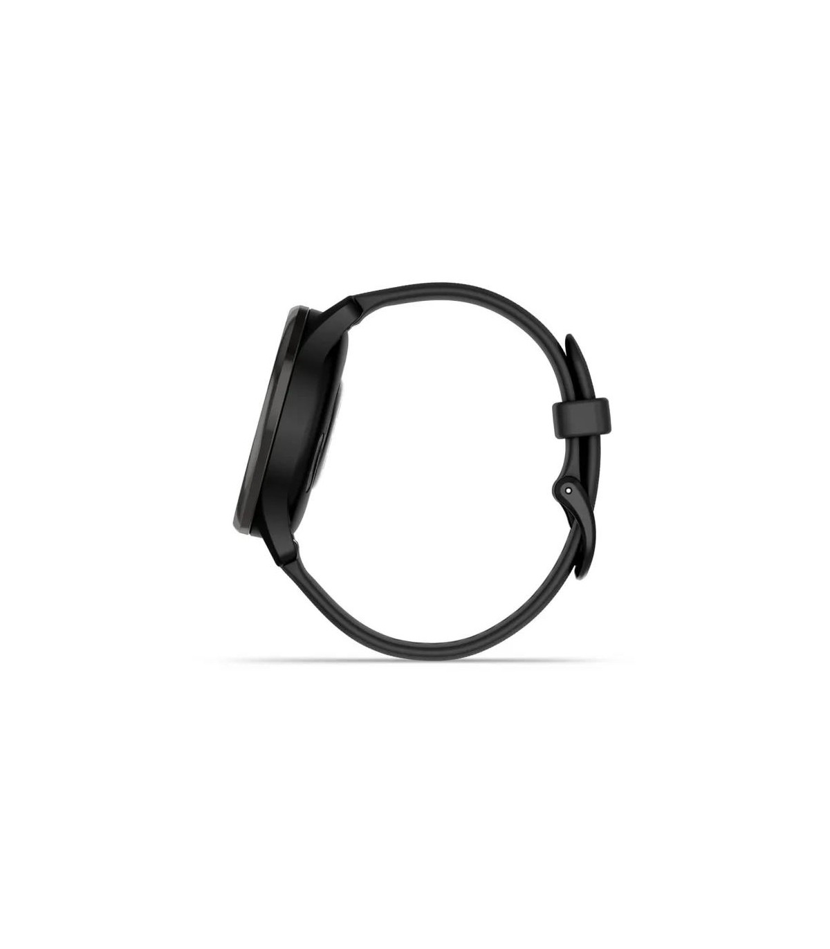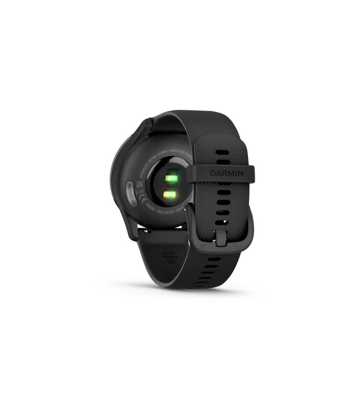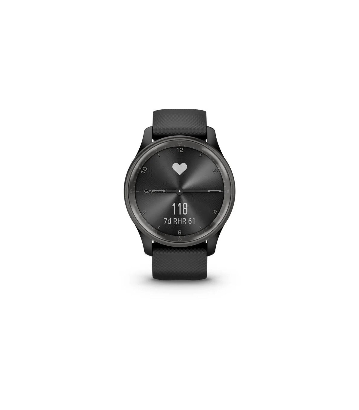 - Garmin vivomove Trend. Display technology: LCD, Display resolution: 254 x 346 pixels, Touchscreen. GPS (satellite). Weight: 28.3 g. Waterproof up to: 50 m, Band material: Silicone, Band colour: Black