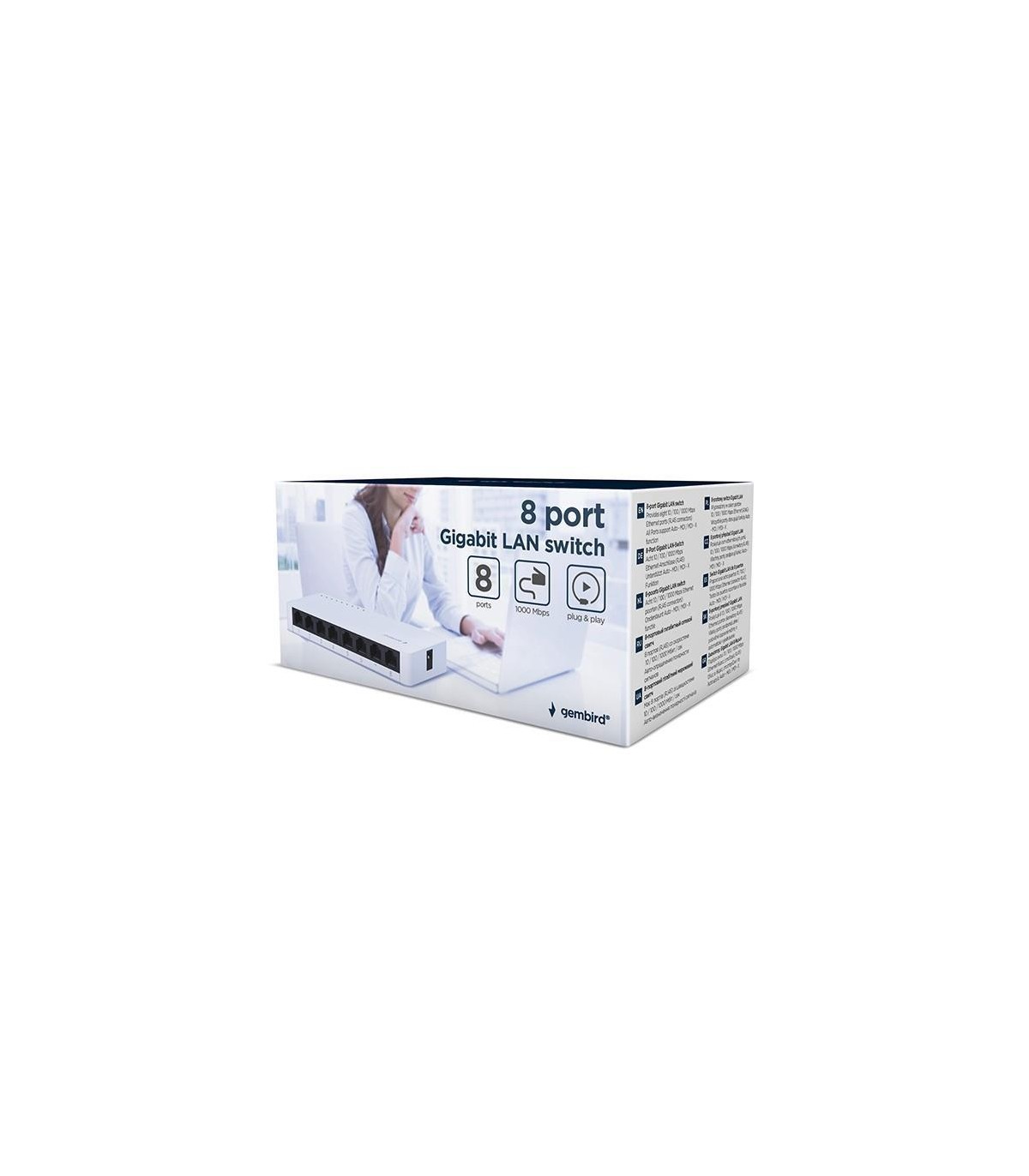 - Gembird NSW-G8-01. Switch type: Unmanaged. Basic switching RJ-45 Ethernet ports type: Gigabit Ethernet (10/100/1000), Basic switching RJ-45 Ethernet ports quantity: 8. Networking standards: IEEE 802.3, IEEE 802.3ab, IEEE 802.3u, IEEE 802.3x. DC input volt