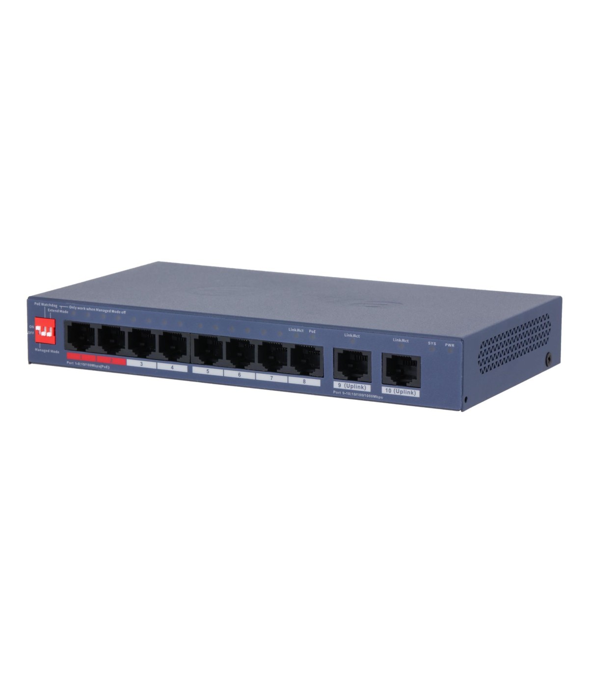- Dahua Technology CS4010-8ET2GT-110. Switch type: Managed, Switch layer: L2. Basic switching RJ-45 Ethernet ports type: Gigabit Ethernet (10/100/1000), Basic switching RJ-45 Ethernet ports quantity: 10. MAC address table: 8000 entries, Switching capacity: