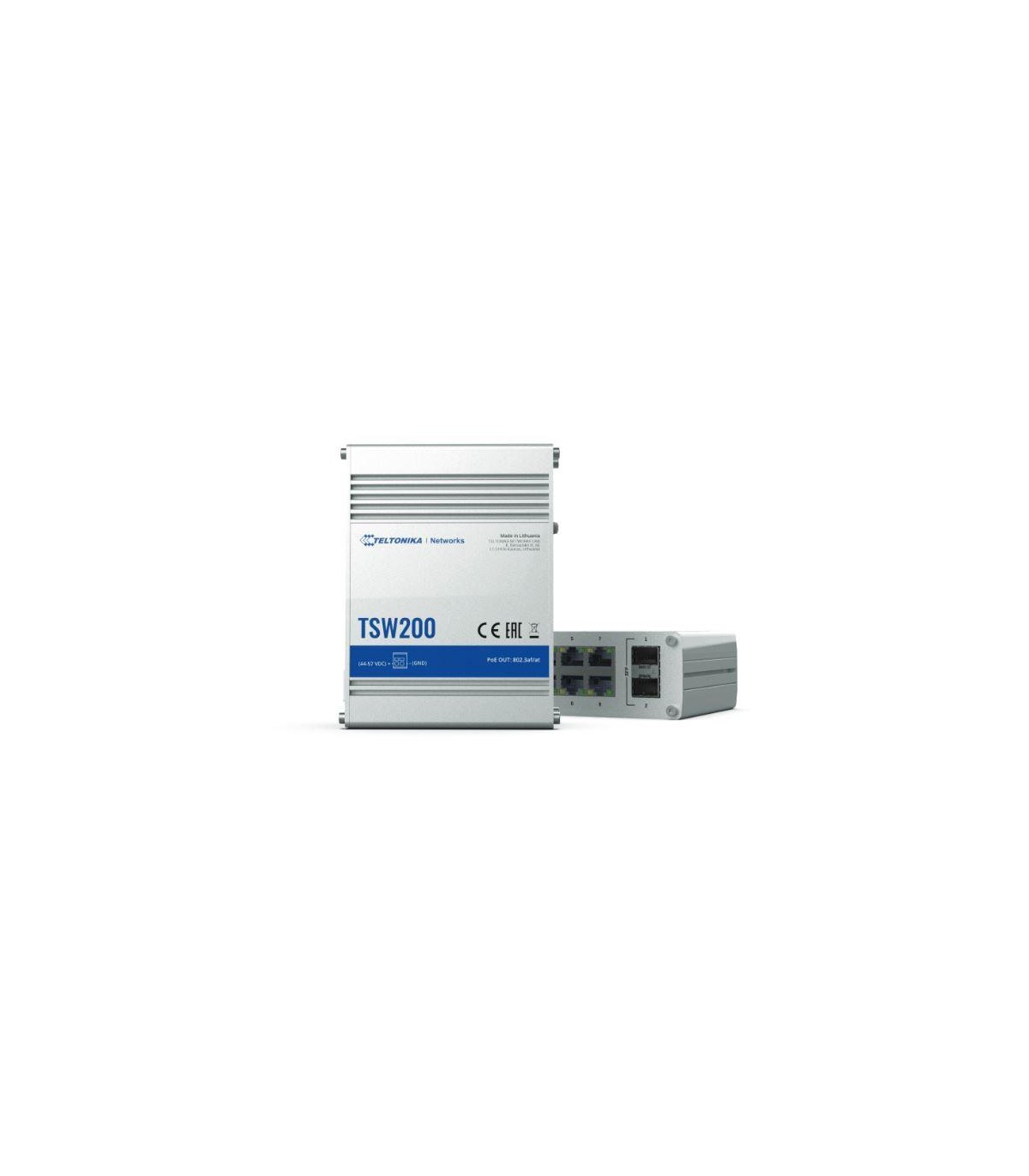 - Teltonika TSW200. Switch type: Unmanaged. Basic switching RJ-45 Ethernet ports type: Gigabit Ethernet (10/100/1000), Basic switching RJ-45 Ethernet ports quantity: 8. MAC address table: 2000 entries. Networking standards: IEEE 802.3, IEEE 802.3af, IEEE 80
