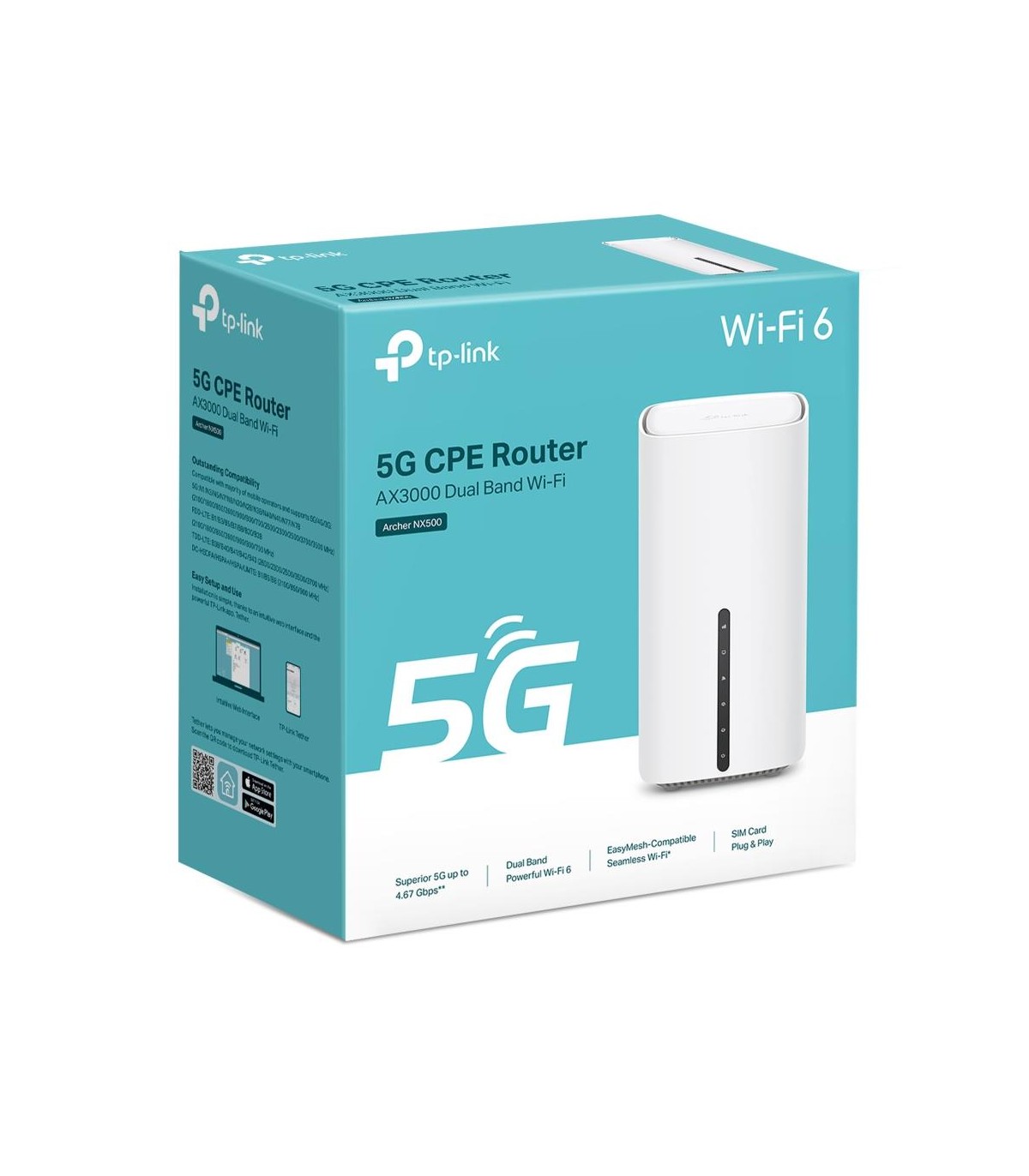 - TP-Link Archer NX500. WAN connection type: RJ-45. Wi-Fi band: Dual-band (2.4 GHz / 5 GHz), Top Wi-Fi standard: Wi-Fi 6 (802.11ax), WLAN data transfer rate (max): 2402 Mbit/s. Ethernet LAN interface type: Gigabit Ethernet, Ethernet LAN data rates: 10,100,1