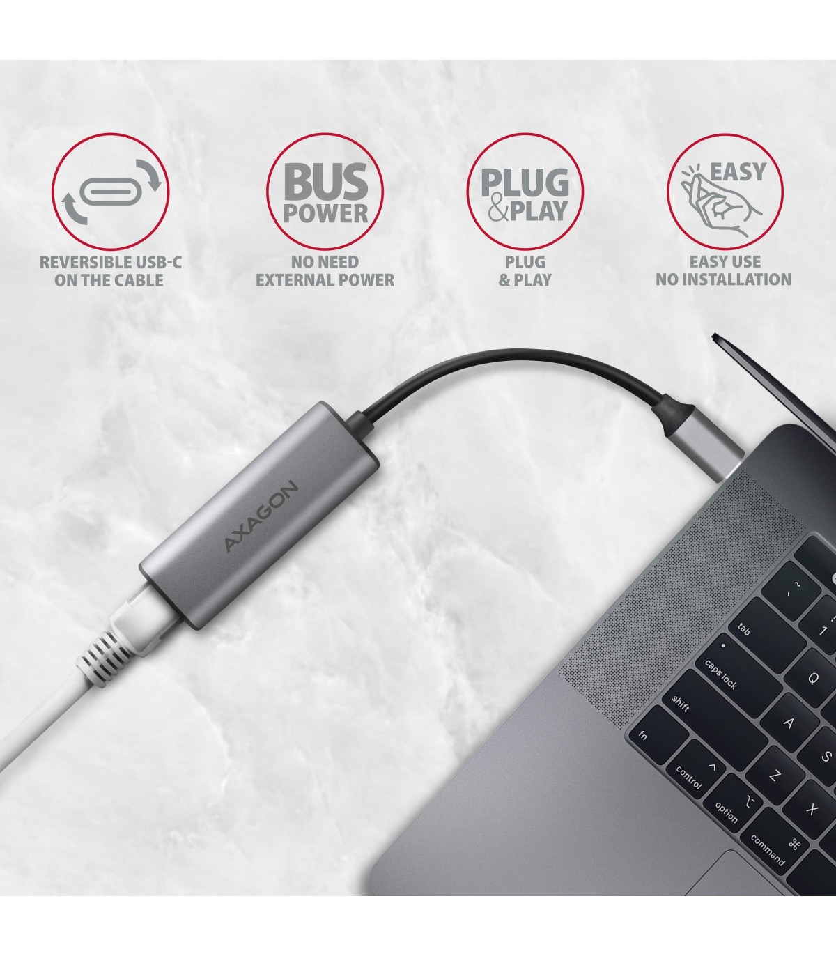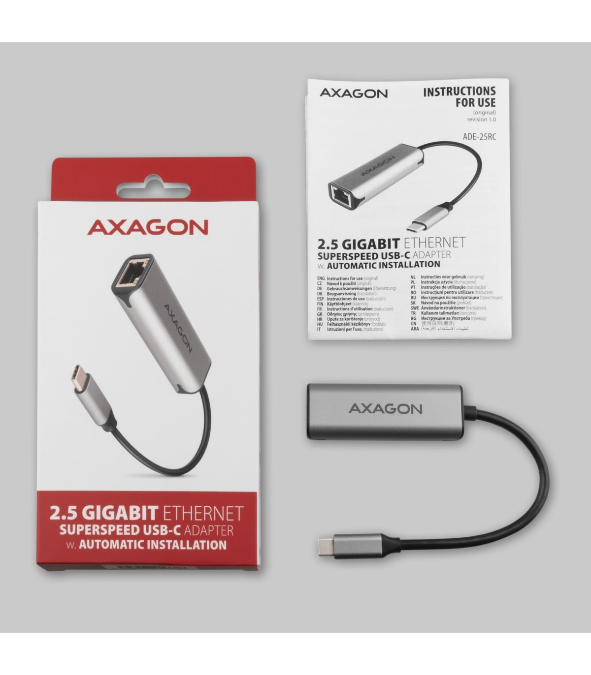 - Axagon ADE-25RC SuperSpeed USB-C 2.5 gigabit ethernet adapter. Connectivity technology: Wired, Host interface: USB Type-C, Interface: Ethernet. Maximum data transfer rate: 2500 Mbit/s. USB powered. Product colour: Grey