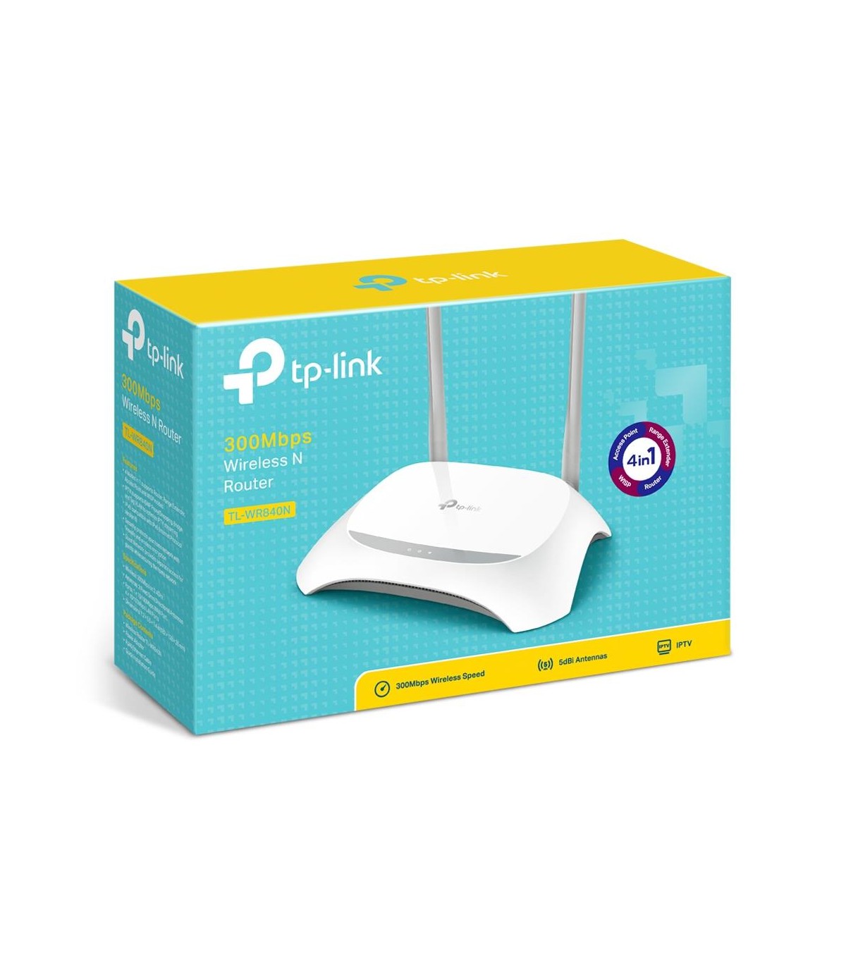 - TP-Link TL-WR840N. WAN connection type: RJ-45. Wi-Fi band: Single-band (2.4 GHz), Top Wi-Fi standard: Wi-Fi 4 (802.11n), WLAN data transfer rate (max): 300 Mbit/s. Ethernet LAN interface type: Fast Ethernet, Ethernet LAN data rates: 10,100 Mbit/s, Cabling