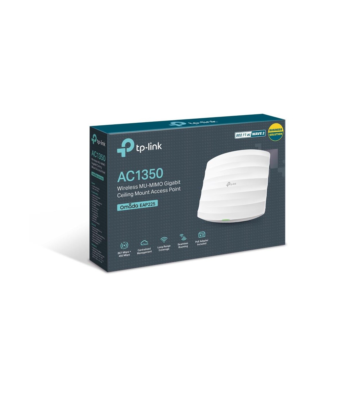 - TP-Link Omada EAP225. 2.4 GHz, 5 GHz, Maximum data transfer rate: 1350 Mbit/s. Security algorithms: 64-bit WEP, 128-bit WEP, 152-bit WEP, SSID, WPA, WPA-PSK, WPA2, WPA2-PSK. Ethernet LAN data rates: 10,100,1000 Mbit/s. Power over Ethernet (PoE). Product c