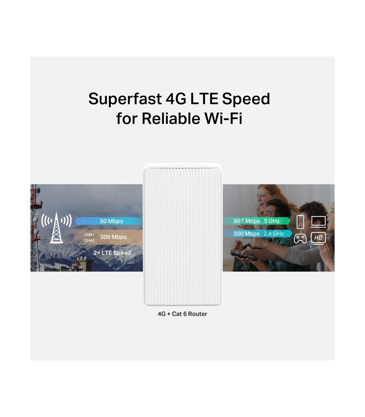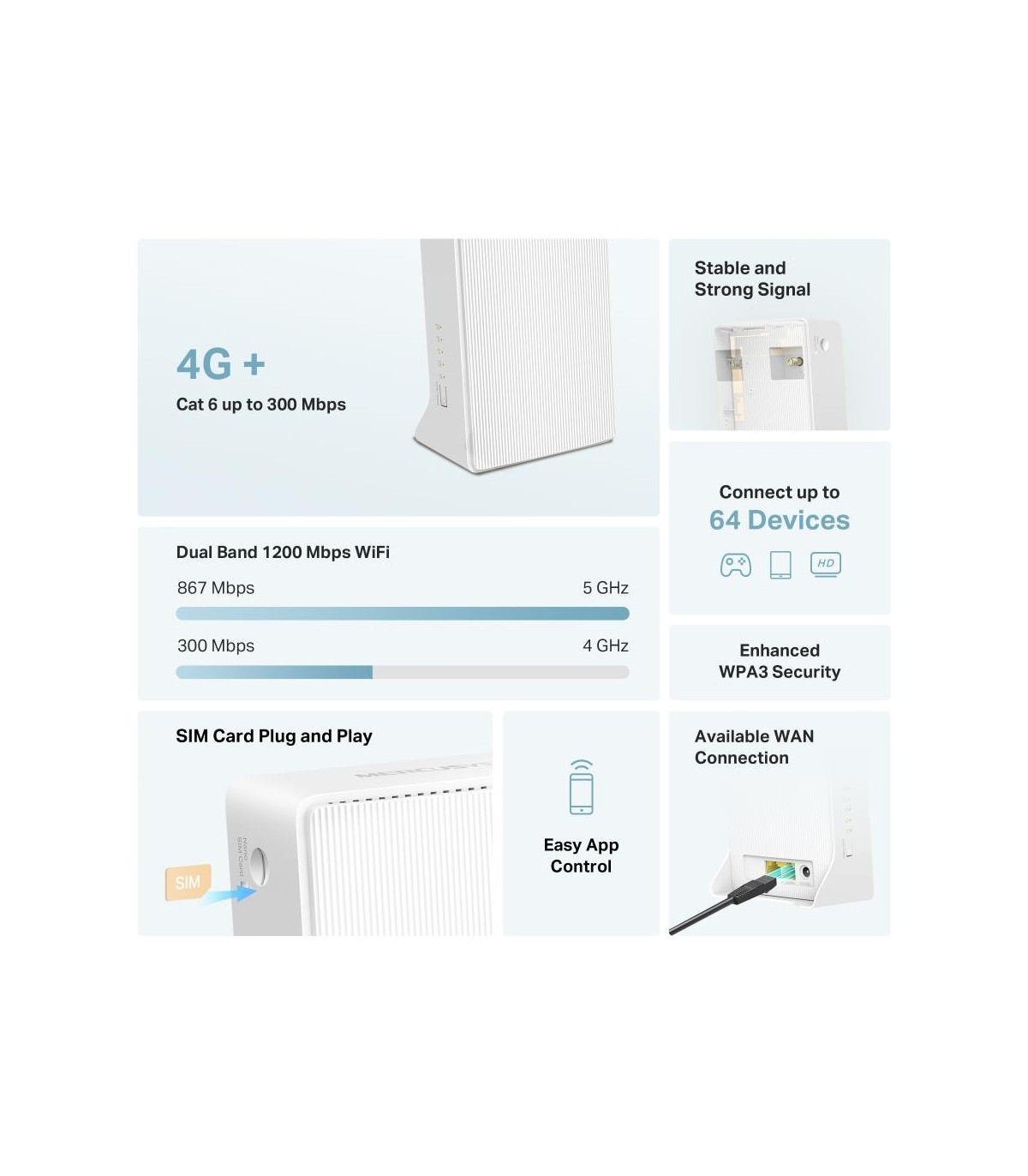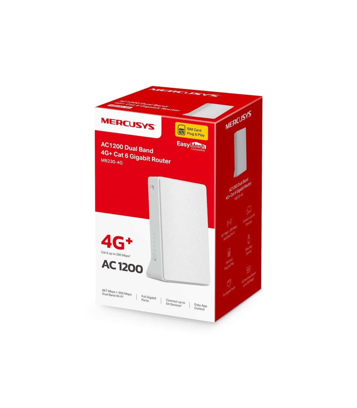 - Mercusys 4G+ Cat6 AC1200 Wireless Dual Band Gigabit Router. WAN connection type: RJ-45. Wi-Fi band: Dual-band (2.4 GHz / 5 GHz), Top Wi-Fi standard: Wi-Fi 5 (802.11ac), WLAN data transfer rate (max): 1200 Mbit/s. Ethernet LAN interface type: Gigabit Ether