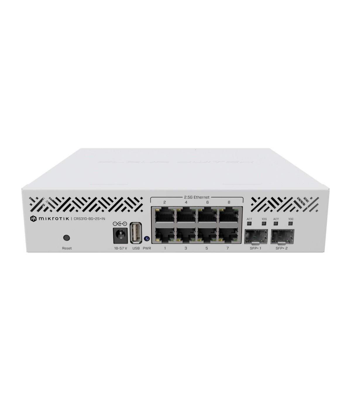 - Mikrotik CRS310-8G+2S+IN: L3 Smart Switch. Switch type: Managed, Switch layer: L3. Basic switching RJ-45 Ethernet ports type: 2.5G Ethernet (100/1000/2500), Basic switching RJ-45 Ethernet ports quantity: 8. DC input voltage: 18 - 57 V. Rack mounting, Form
