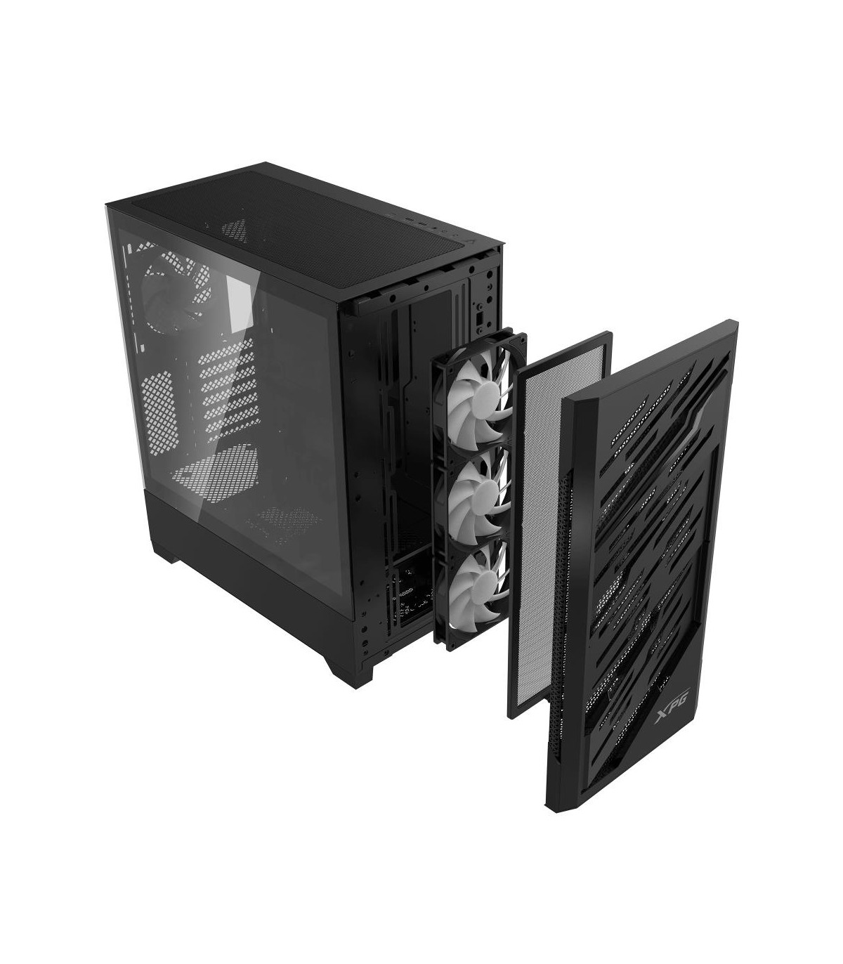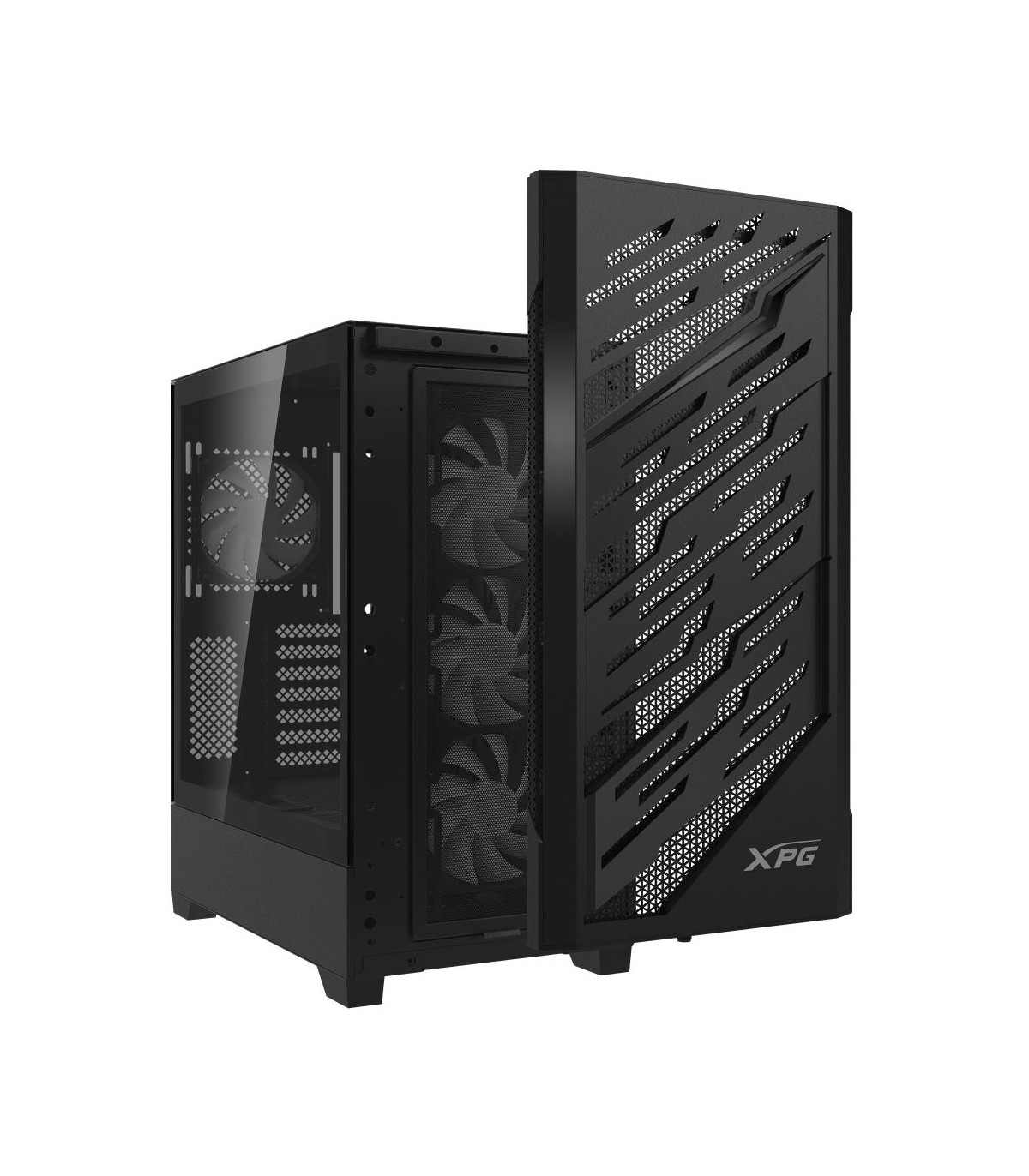 - XPG STARKER AIR BTF Mid-Tower Black. Form factor: Midi Tower, Type: PC, Product colour: Black. Front fans diameters supported: 120,140 mm, Side fans diameters supported: 120 mm, Rear fans diameters supported: 120 mm. Width: 242 mm, Depth: 464 mm, Height: