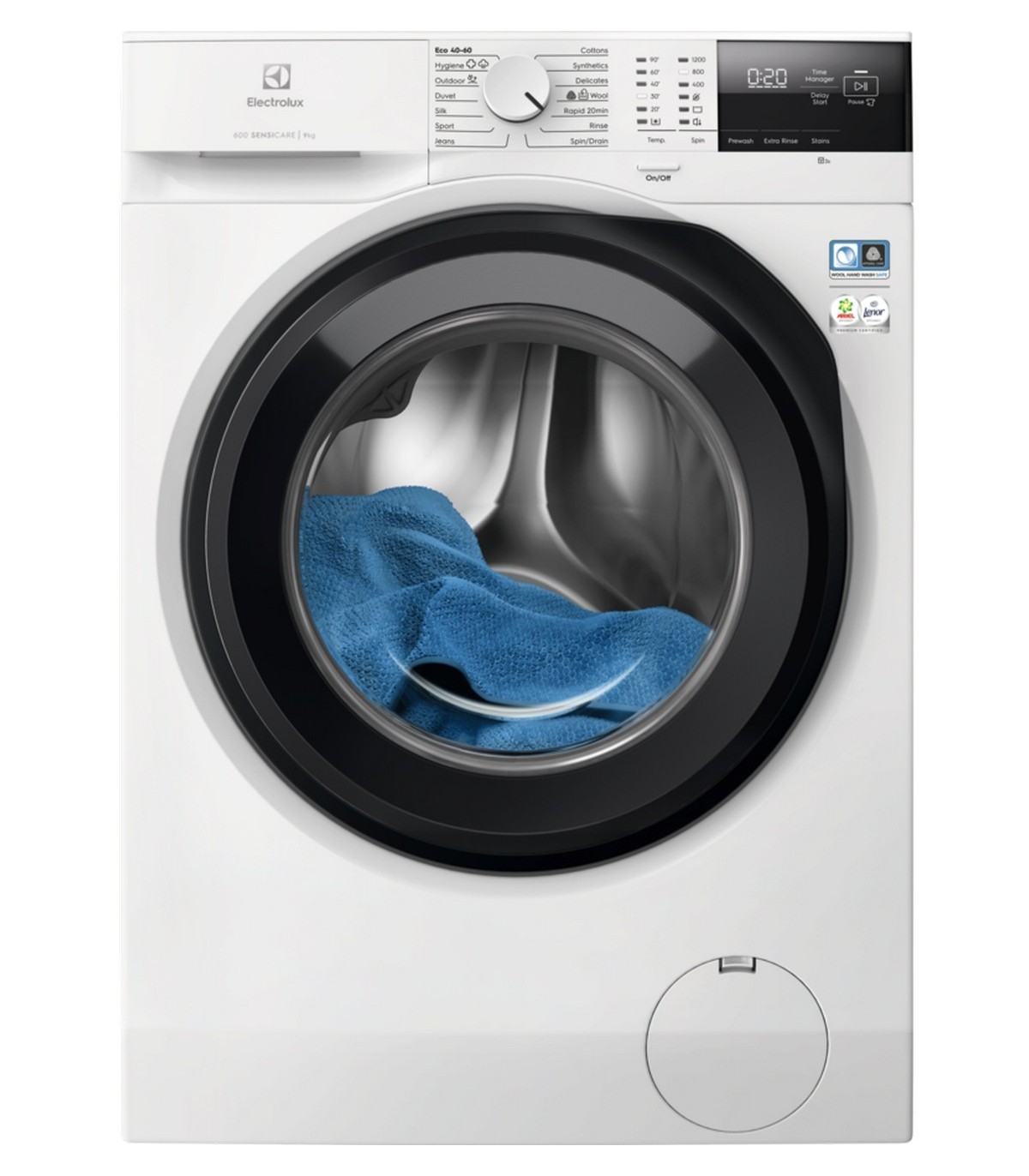 - Puuvillased esemed, sünteetika, õrnad esemed, villased esemed, kiirprogramm (20 min), loputus, tsentrifuug / väljapumpamine, teksad, spordirõivad, siid, voodikate, spordirõivad, Hygiene, Eco 40-60