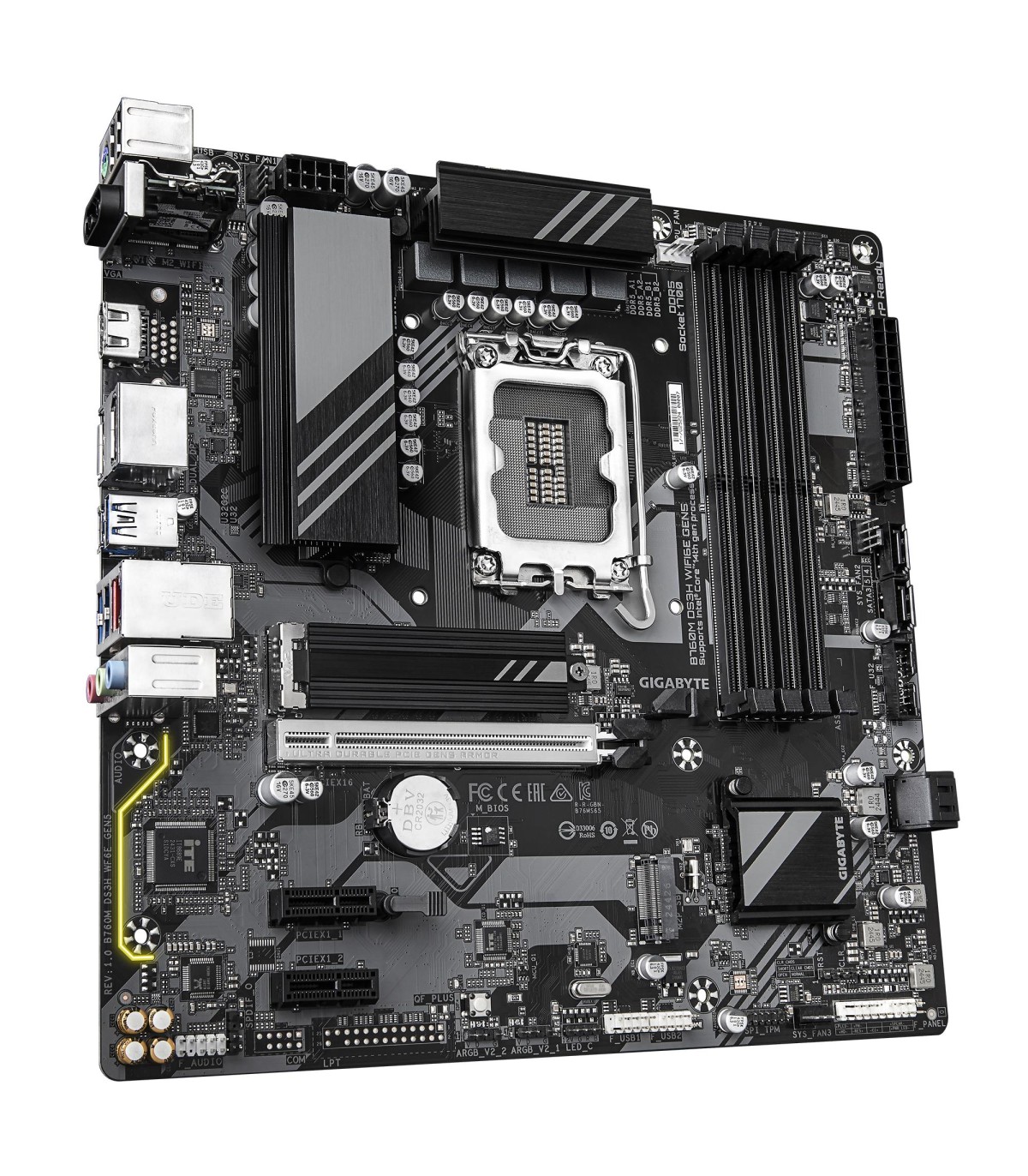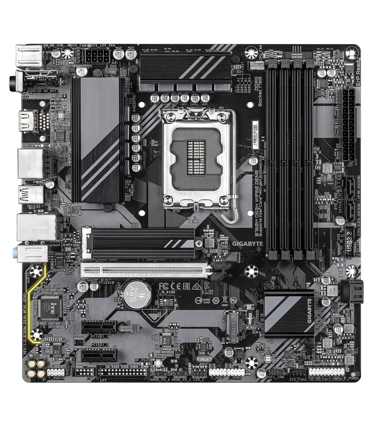- GIGABYTE B760M DS3H WIFI6E GEN5 Motherboard - Supports Intel Core 14th Gen CPUs, 6+2+1 Phases Digital VRM, up to 5600MHz DDR5, 2xPCIe 4.0 M.2, Wi-Fi 6E, 2.5GbE LAN, USB 3.2 Gen2. Processor manufacturer: Intel, Processor socket: LGA 1700, Compatible proces