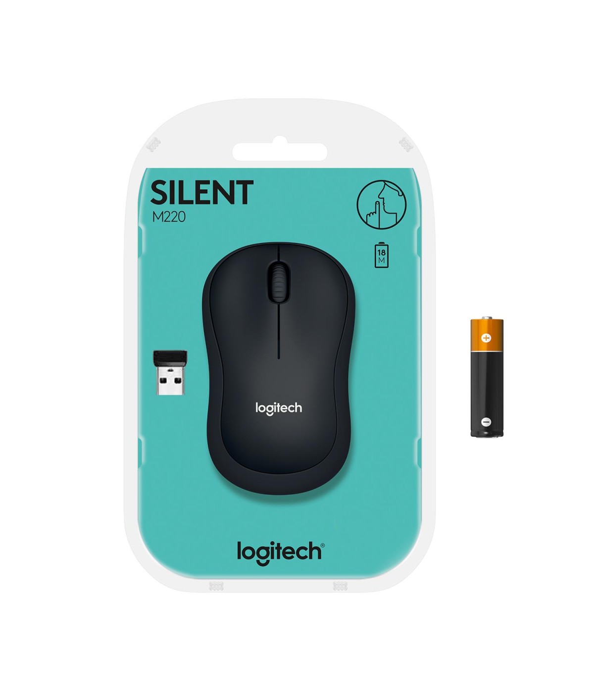 - Logitech M220 SILENT. Form factor: Ambidextrous. Movement detection technology: Optical, Device interface: RF Wireless, Movement resolution: 1000 DPI, Buttons type: Pressed buttons, Buttons quantity: 3, Scroll type: Wheel. Power source: Batteries. Product
