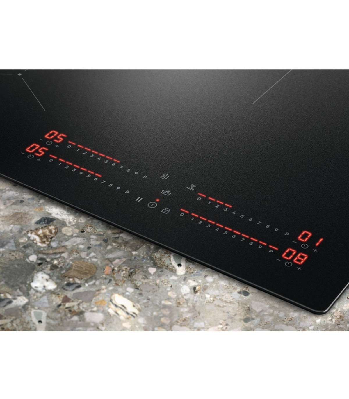 - Keev vesi hoitakse kontrolli all keeduanduriga, täielik paindlikkus 4 individuaalse keeduvälja juhtnupuga, EcoTimer™. SaphirMatt pealispind