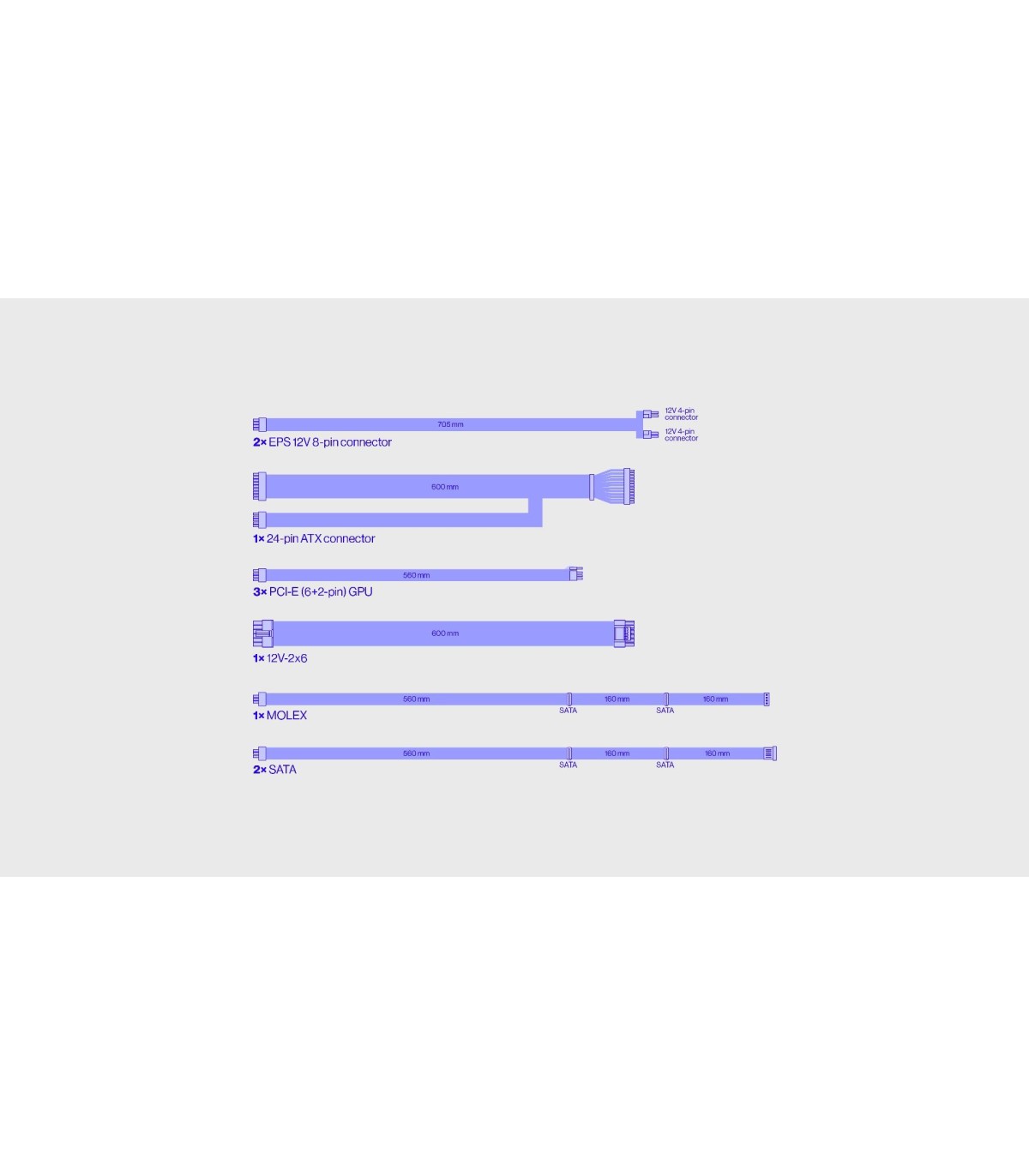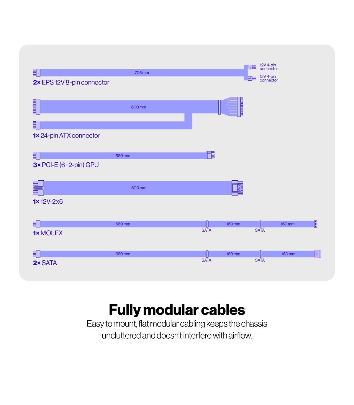 - SATA power cable length
