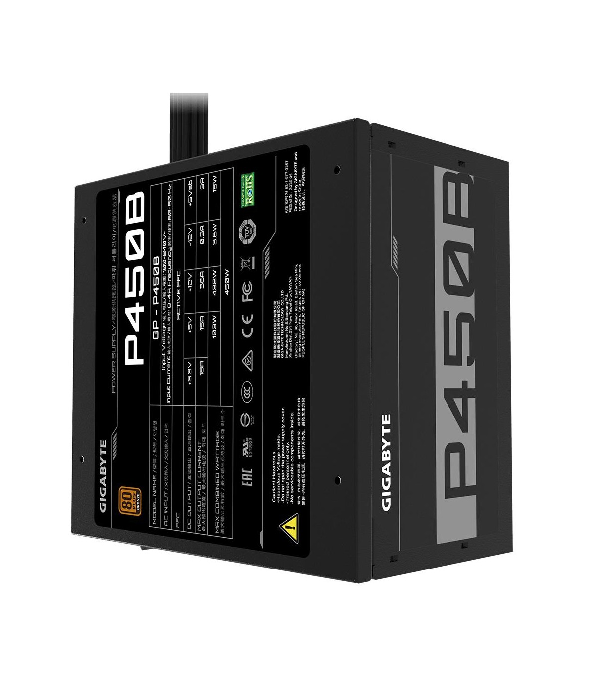 - GIGABYTE P450B. Total power: 450 W, AC input voltage: 100 - 240 V, AC input frequency: 50 - 60 Hz. Motherboard power connector: 20+4 pin ATX, Motherboard power cable length: 55 cm, SATA power cable length: 500 mm. Purpose: PC, Power supply unit (PSU) form
