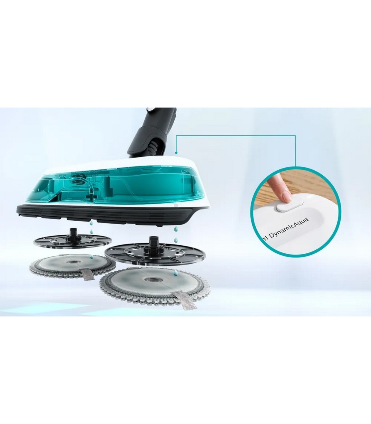- Power Spinning Pads ja automaatne veekoguse doseerimine tagavad põhjaliku moppimise, ProHygienic Aqua, AllFloor DynamicPower hari integreeritud põrandavalgustitega.