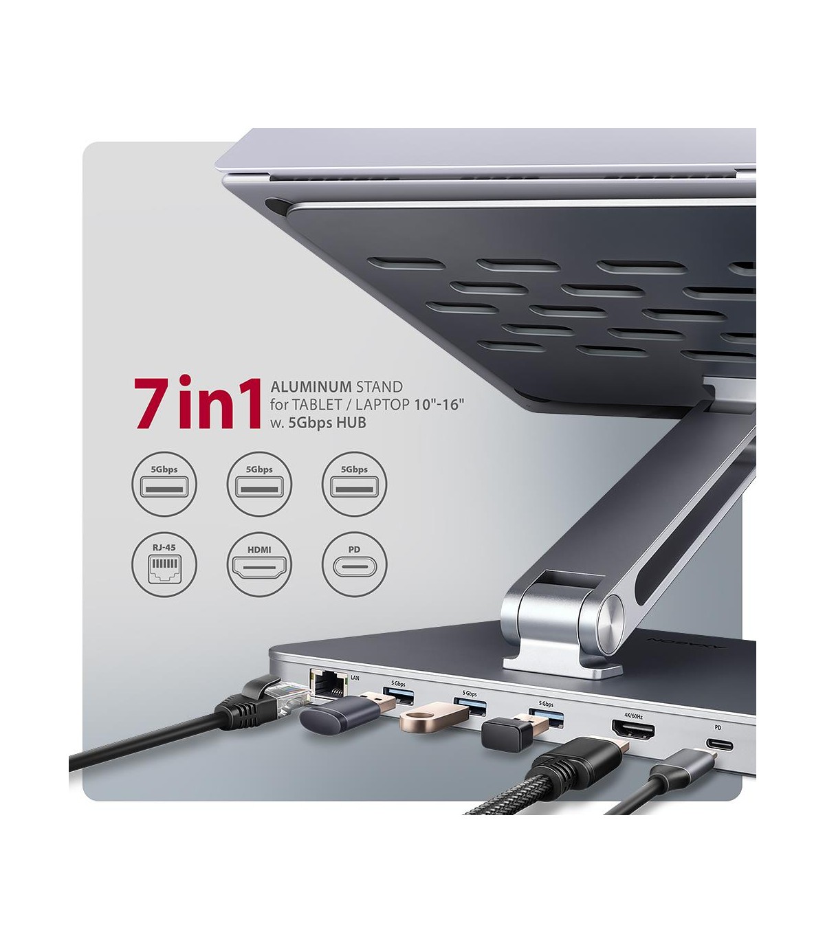 AXAGON NB ACC STAND 10-16" + I/O HUB/7IN1 HMC-STND