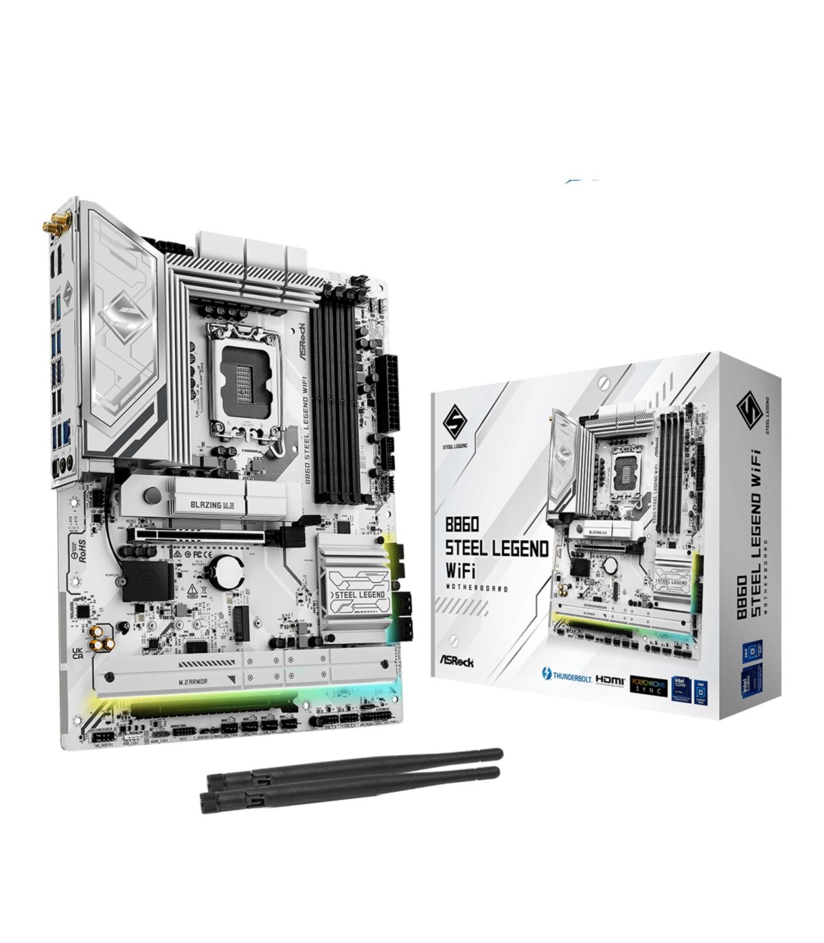 - Asrock B860 Steel Legend WiFi. Processor manufacturer: Intel, Processor socket: LGA 1851 (Socket V1), Compatible processor series: Intel Core Ultra (Series 2). Supported memory types: DDR5-SDRAM, Maximum internal memory: 256 GB, Memory slots type: DIMM. S