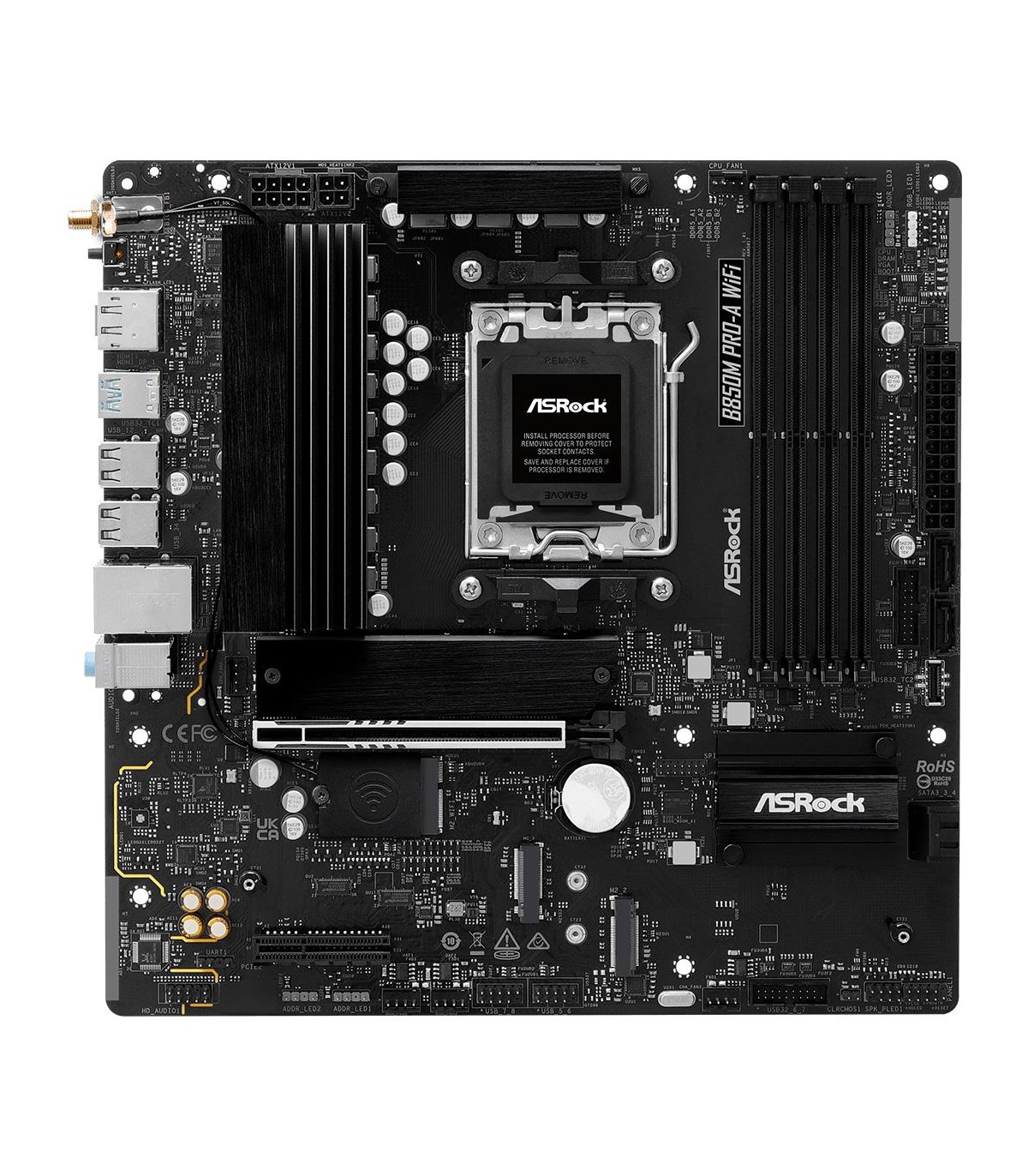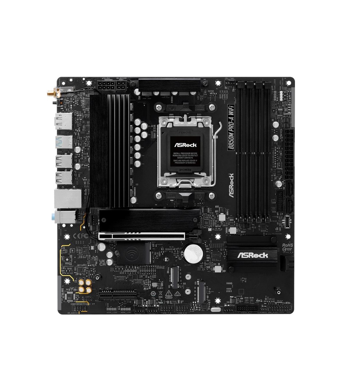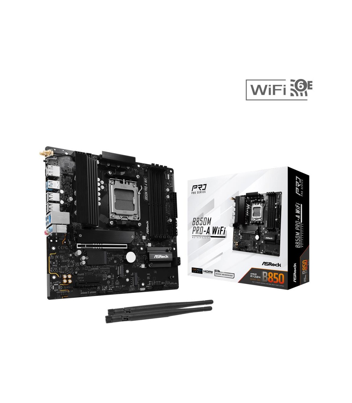 - Asrock B850M Pro-A WiFi. Processor manufacturer: AMD, Processor socket: Socket AM5, Compatible processor series: AMD Ryzen 7000 Series, AMD Ryzen 8000 Series, AMD Ryzen 9000 Series. Supported memory types: DDR5-SDRAM, Maximum internal memory: 256 GB, Memo
