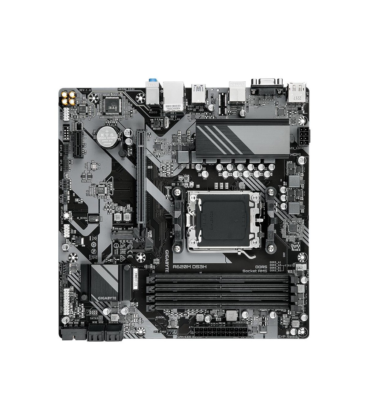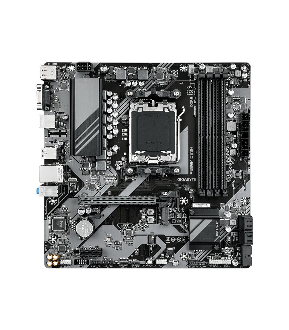 - GIGABYTE A620M DS3H Motherboard - Supports AMD Ryzen 8000 CPUs, 5+2+2 Phases Digital VRM, up to 7600MHz DDR5 (OC), 1xPCIe 4.0 M.2, GbE LAN, USB 3.2 Gen 1. Processor manufacturer: AMD, Processor socket: Socket AM5, Compatible processor series: AMD Ryzen 70