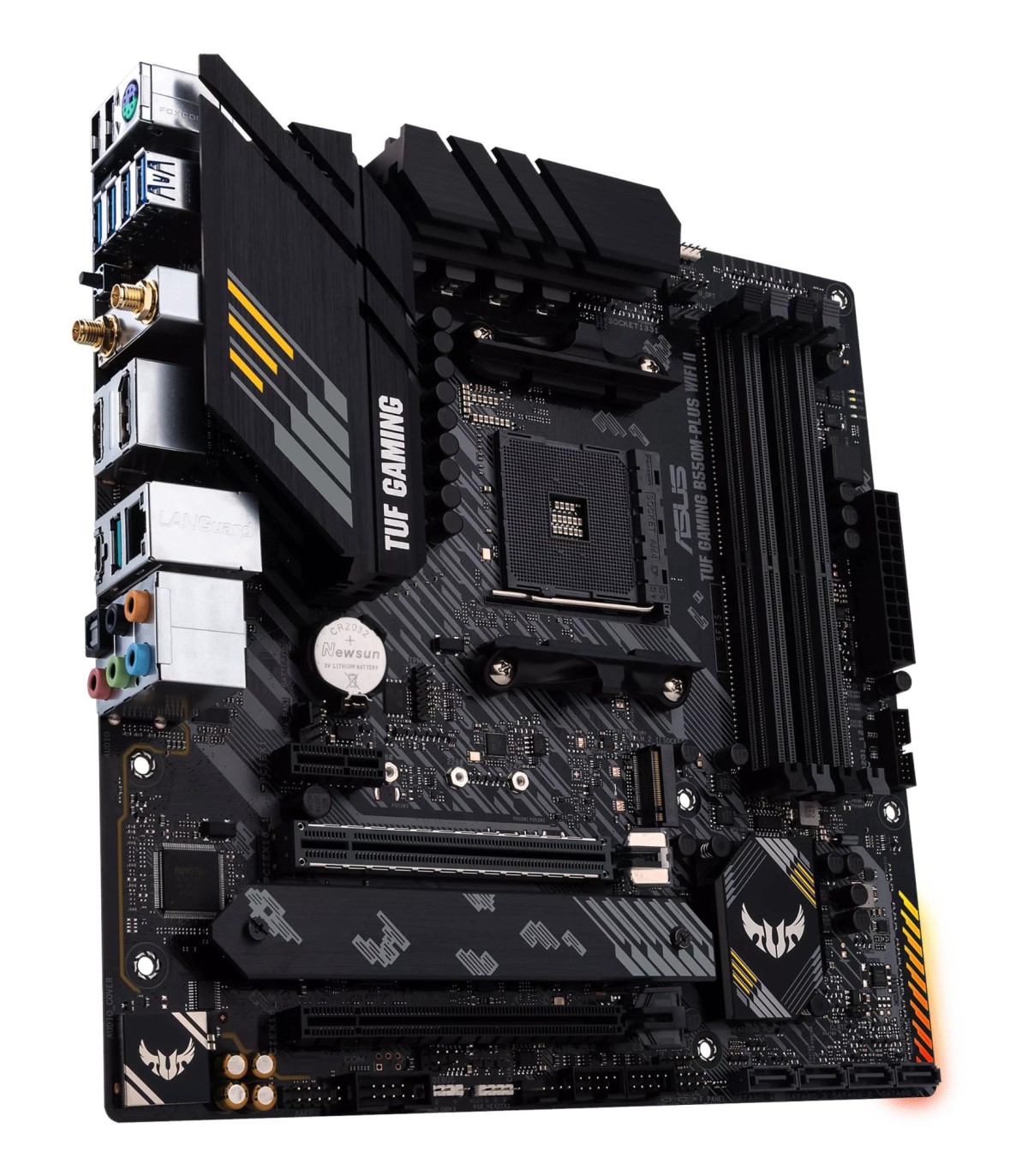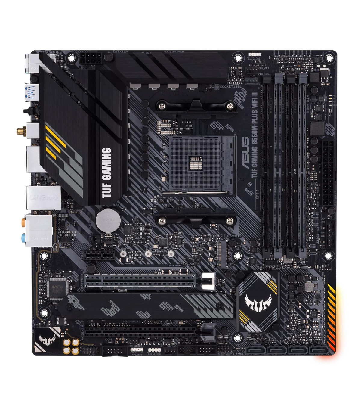 - ASUS TUF GAMING B550M-PLUS WIFI II. Processor manufacturer: AMD, Processor socket: Socket AM4, Compatible processor series: AMD Ryzen 3000 Series, AMD Ryzen 5000 Series. Supported memory types: DDR4-SDRAM, Maximum internal memory: 128 GB, Memory slots typ