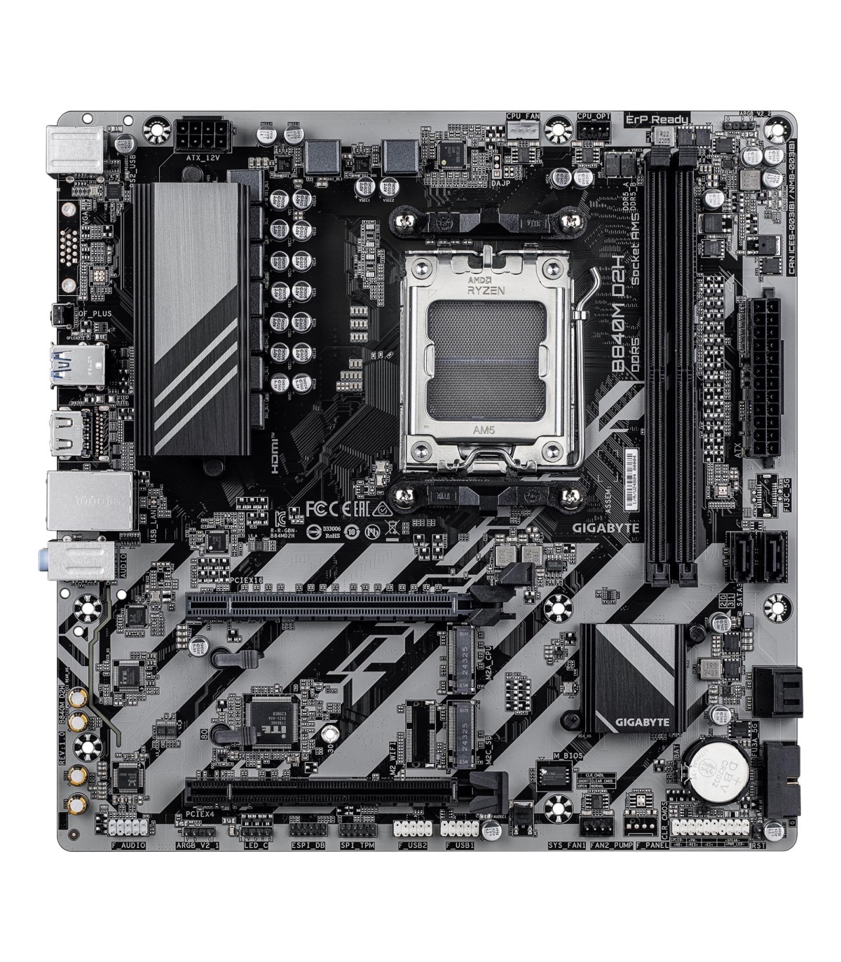 - GIGABYTE B840M D2H Motherboard - AMD Ryzen 9000 CPUs, 5+2+2 Phases VRM, up to 7600MHz DDR5, 1xPCIe 4.0 + 1xPCIe 3.0 M.2, 2.5GbE LAN, USB 3.2 Gen 1. Processor manufacturer: AMD, Processor socket: Socket AM5, Compatible processor series: AMD Ryzen 7000 Seri
