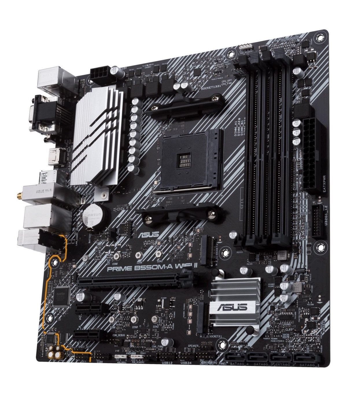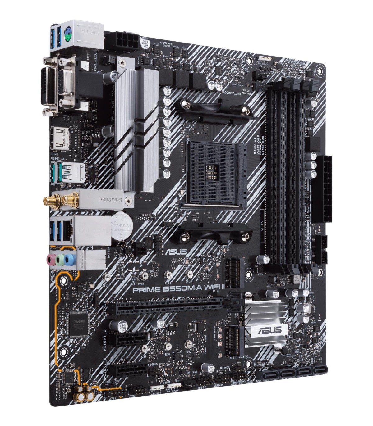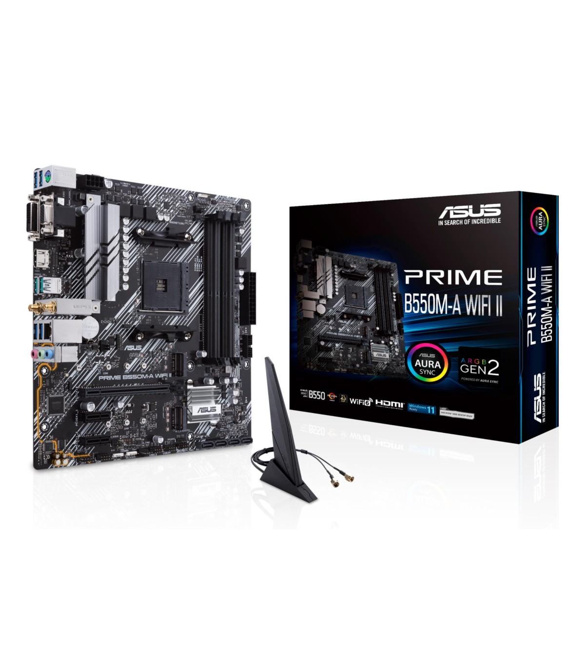 - ASUS PRIME B550M-A WIFI II. Processor manufacturer: AMD, Processor socket: Socket AM4, Compatible processor series: AMD Ryzen 3000 Series, AMD Ryzen 5000 Series. Supported memory types: DDR4-SDRAM, Maximum internal memory: 128 GB, Memory slots type: DIMM.