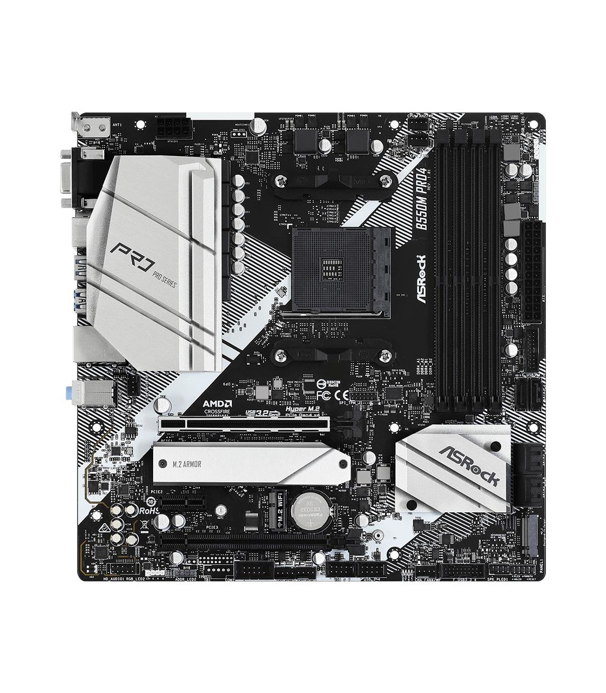 - Asrock B550M Pro4. Processor manufacturer: AMD, Processor socket: Socket AM4, Compatible processor series: AMD Ryzen 3000 Series. Supported memory types: DDR4-SDRAM, Maximum internal memory: 128 GB, Memory slots type: DIMM. Supported storage drive interfa