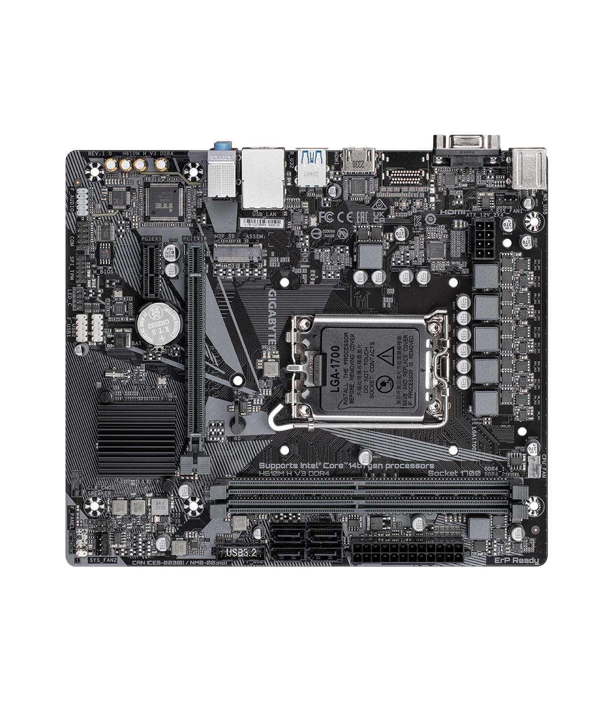 - GIGABYTE H610M H V3 DDR4 Motherboard - Supports Intel Core 14th CPUs, 4+1+1 Hybrid Phases Digital VRM, up to 3200MHz DDR4, 1xPCIe 3.0 M.2, GbE LAN, USB 3.2 Gen 1. Processor manufacturer: Intel, Processor socket: LGA 1700, Compatible processor series: Inte
