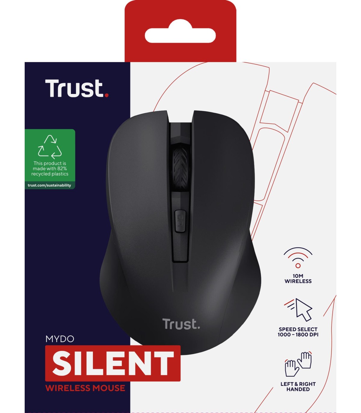 - Trust Mydo. Form factor: Ambidextrous. Movement detection technology: Optical, Device interface: RF Wireless, Movement resolution: 1800 DPI, Buttons type: Pressed buttons, Buttons quantity: 4, Scroll type: Wheel. Power source: Batteries. Product colour: B