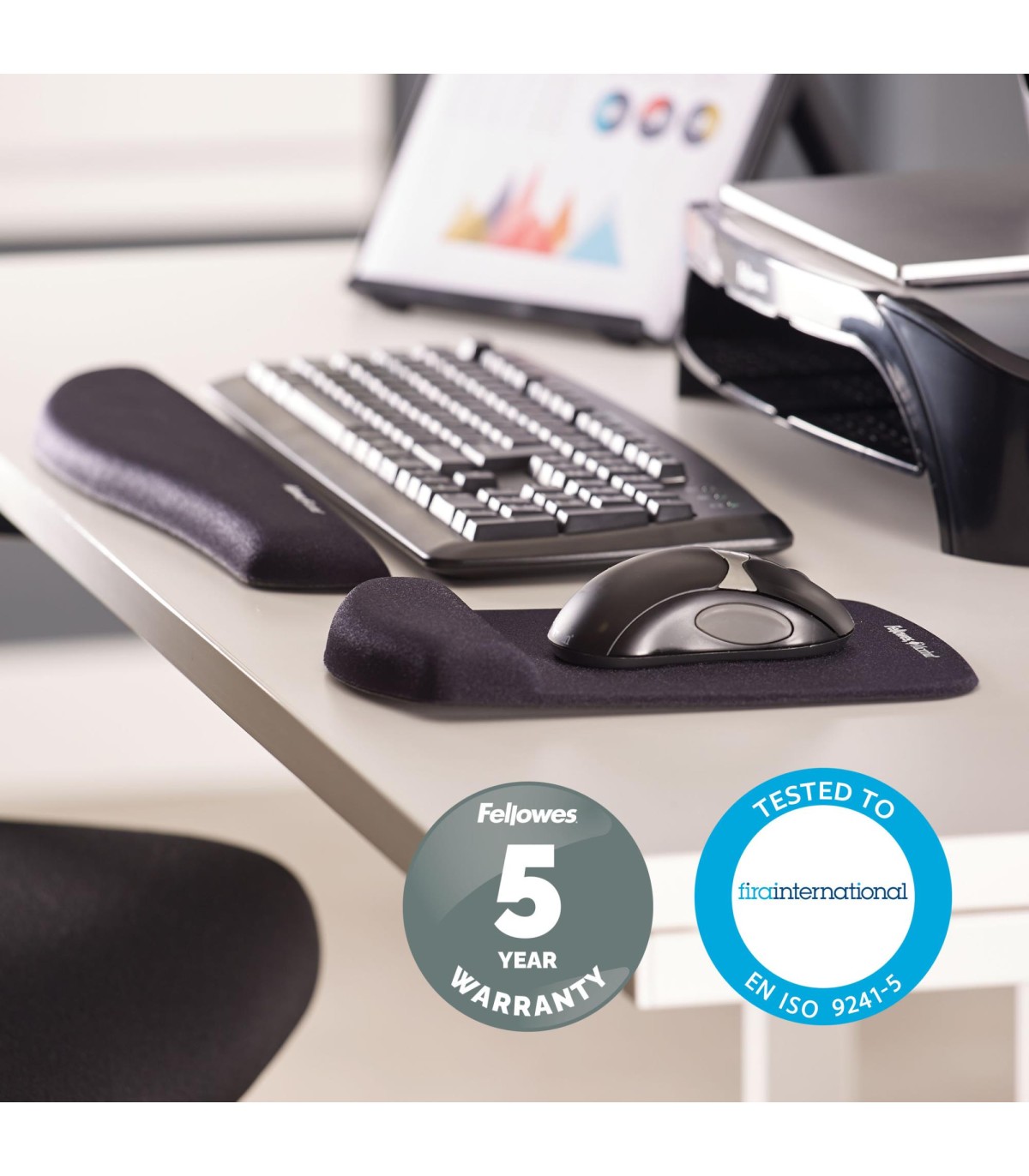 - Fellowes Mouse Mat Wrist Support - PlushTouch Mouse Pad with Non Slip Rubber Base & Antibacterial Protection - Ergonomic Mouse Mat for Computer, Laptop, Home Office Use - Black. Width: 184 mm, Depth: 238 mm. Product colour: Black, Surface coloration: Mono