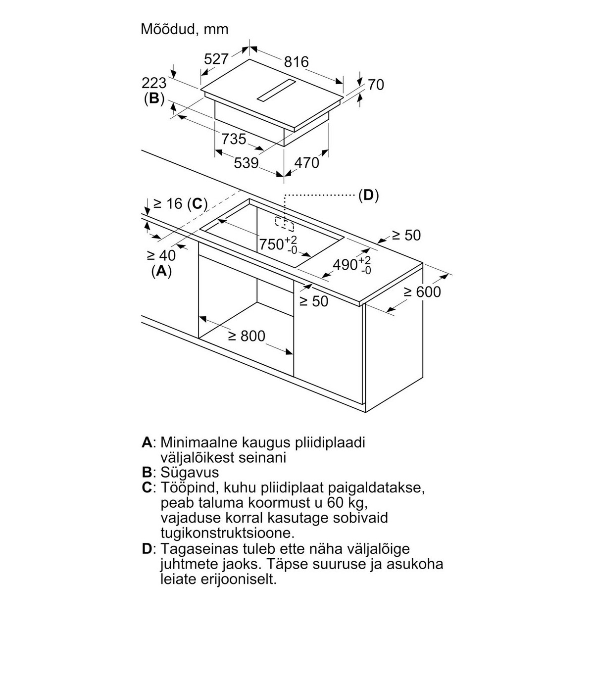 - Соединение между варочной панелью и вытяжкой
