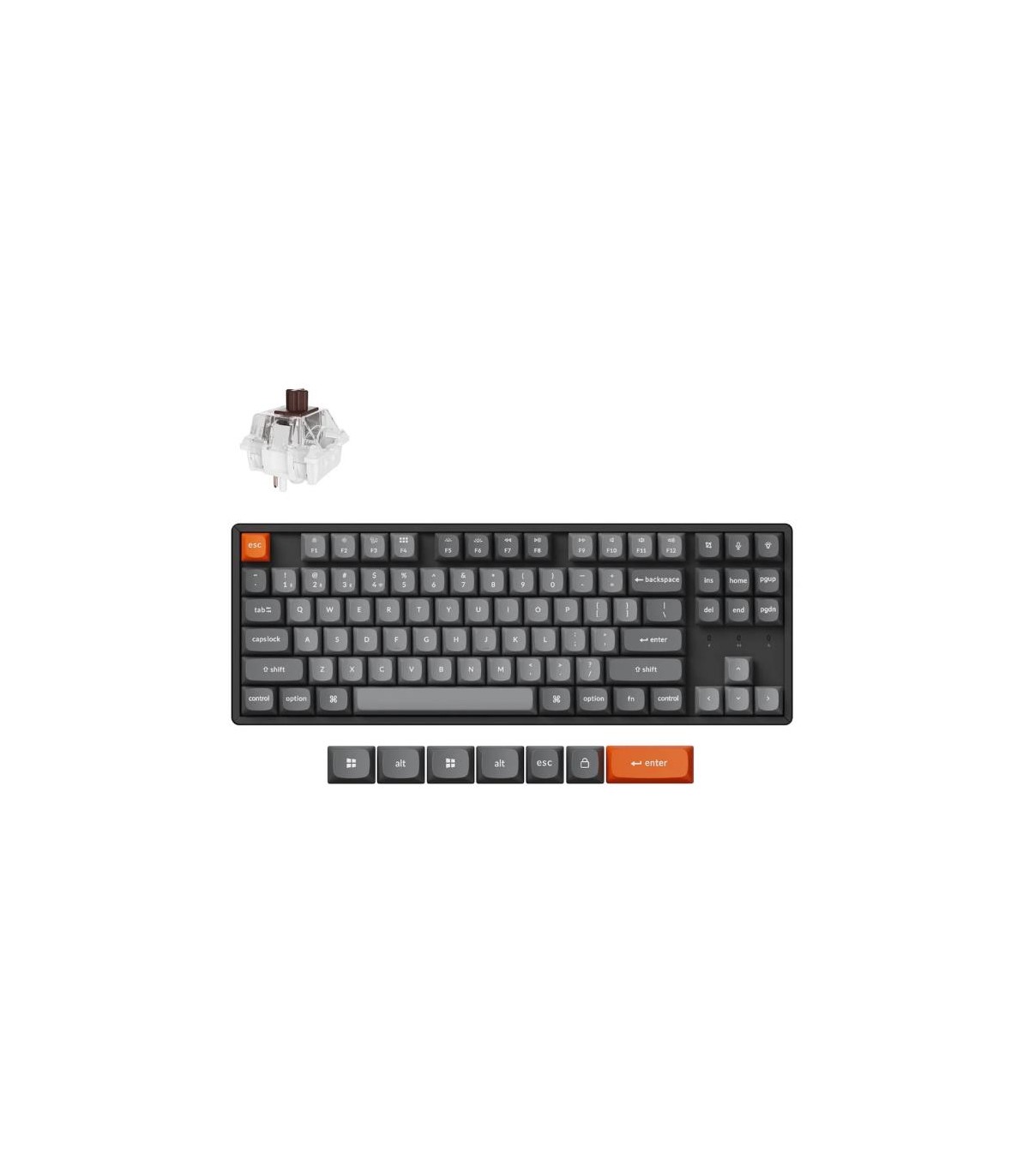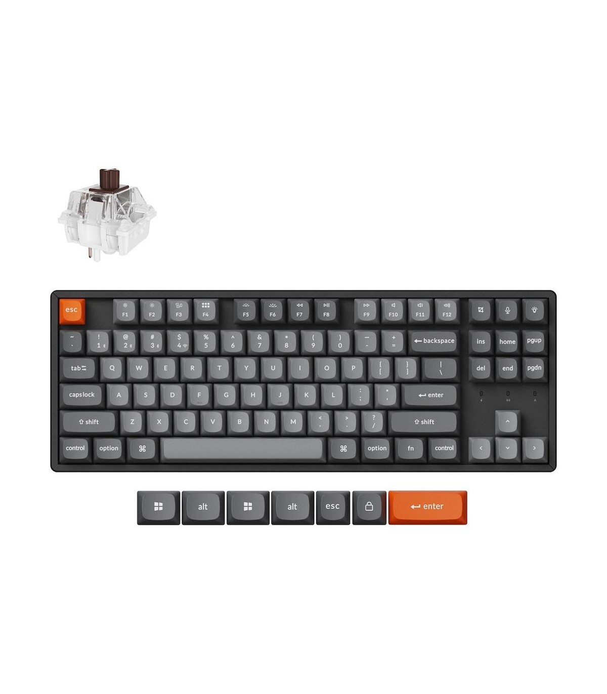 - Keychron K8 Max. Keyboard form factor: 80%. Keyboard style: Straight. Connectivity technology: Wired & Wireless, Device interface: USB + RF Wireless + Bluetooth, Keyboard key switch: Mechanical, Keyboard number of keys: 87. Backlight type: RGB LED. Re