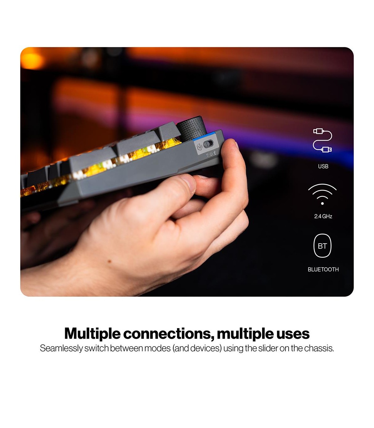 - USB + RF Wireless + Bluetooth