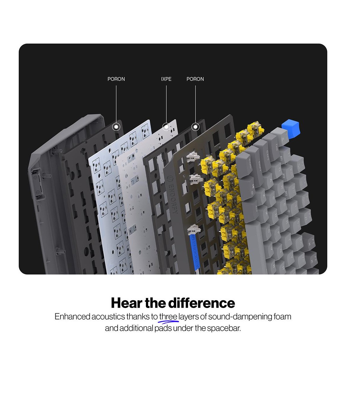 - ENDORFY Thock V2. Keyboard form factor: Full-size (100%). Keyboard style: Straight. Connectivity technology: Wired & Wireless, Device interface: USB + RF Wireless + Bluetooth, Keyboard key switch: Mechanical, Keyboard layout: QWERTY, Keyboard number o
