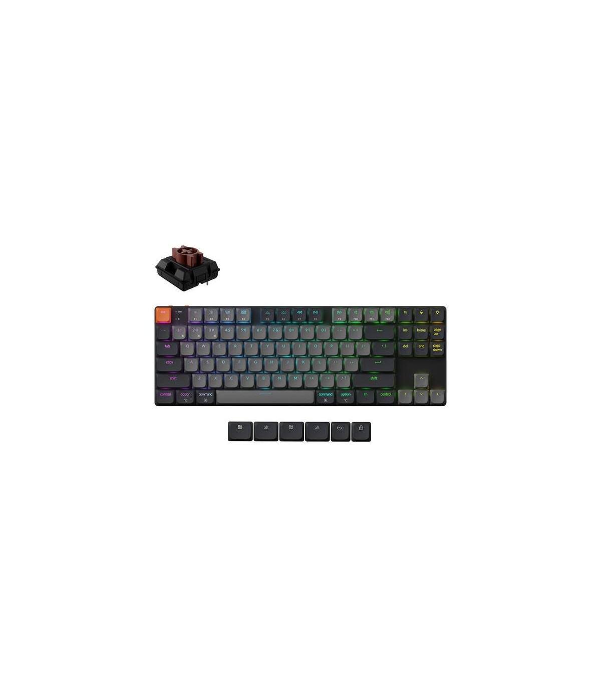 - Keychron K1X-B3. Keyboard form factor: 80%. Keyboard style: Straight. Connectivity technology: Wired & Wireless, Device interface: USB + Bluetooth, Keyboard key switch: Mechanical, Keyboard layout: QWERTY, Keyboard number of keys: 87. Backlight type: RGB