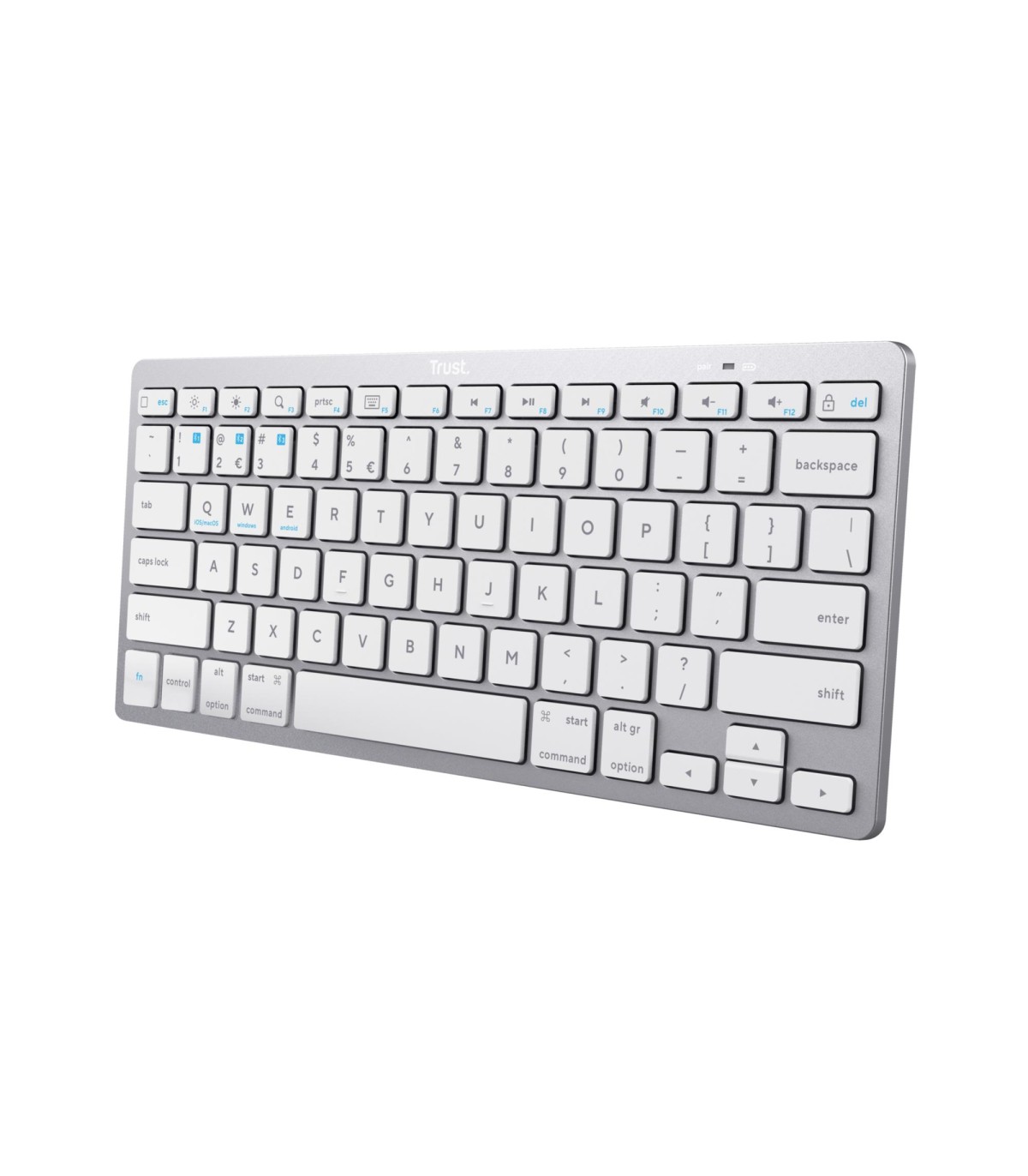 - Trust 24651. Keyboard form factor: 75%. Keyboard style: Straight. Connectivity technology: Wireless, Device interface: Bluetooth, Keyboard key switch: Scissor key switch, Keyboard layout: QWERTY, Keyboard number of keys: 85, Recommended usage: Universal.