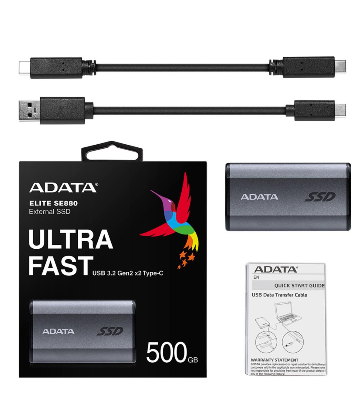 - ADATA SE880. SSD capacity: 500 GB. USB connector: USB Type-C, USB version: 3.2 Gen 2 (3.1 Gen 2). Read speed: 2000 MB/s, Write speed: 2000 MB/s. Product colour: Grey