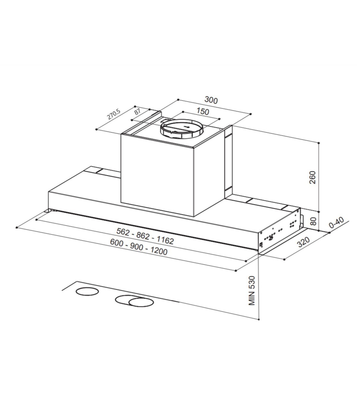 - Соединение между варочной панелью и вытяжкой