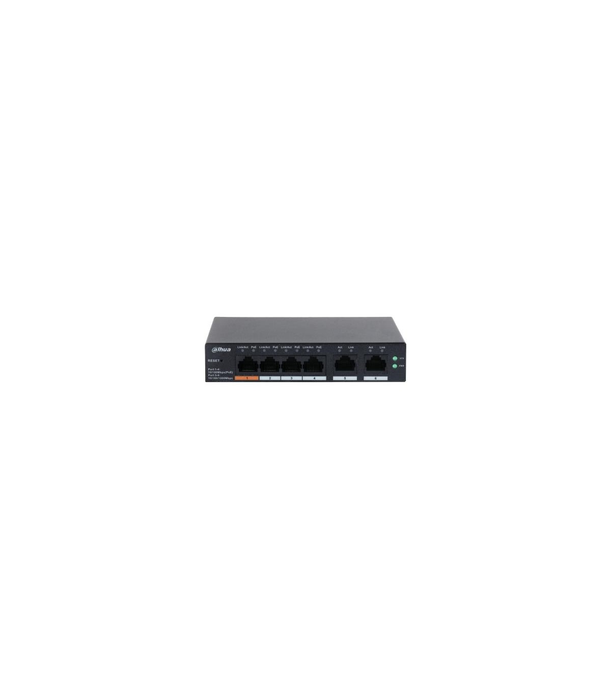 - Dahua Technology DH-CS4006-4ET-60. Switch type: Managed, Switch layer: L2. Basic switching RJ-45 Ethernet ports type: Gigabit Ethernet (10/100/1000), Basic switching RJ-45 Ethernet ports quantity: 6. MAC address table: 8000 entries, Switching capacity: 4.