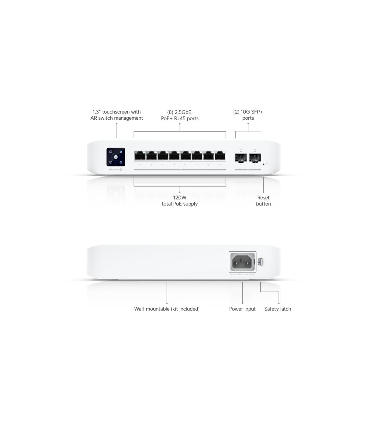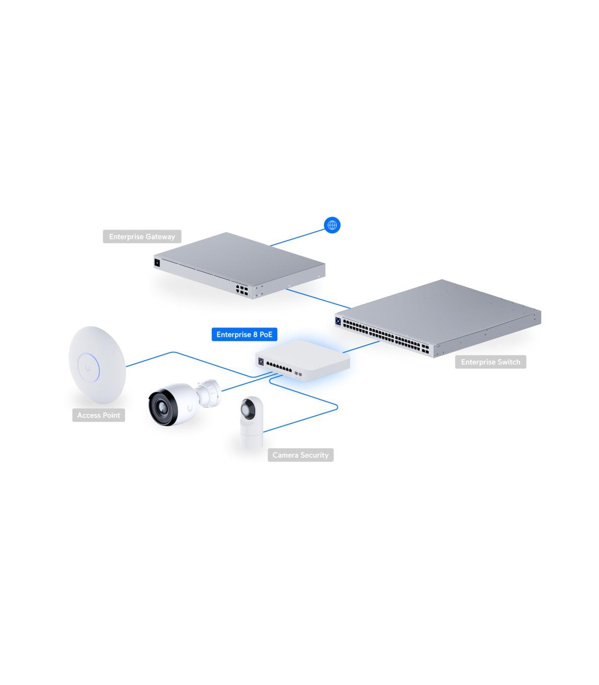 - Ubiquiti UniFi Enterprise 8 PoE. Switch type: Managed, Switch layer: L3. Basic switching RJ-45 Ethernet ports type: 2.5G Ethernet (100/1000/2500), Basic switching RJ-45 Ethernet ports quantity: 8. Switching capacity: 80 Gbit/s. Networking standards: IEEE