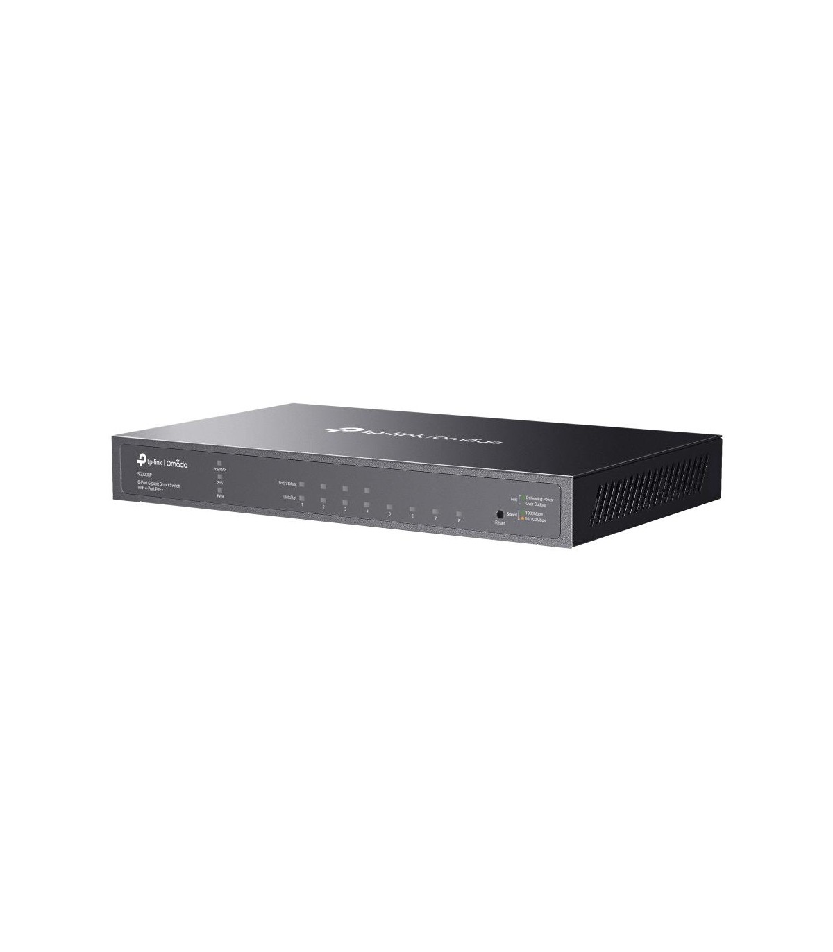 - TP-Link Omada 8-Port Gigabit Smart Switch with 4-Port PoE+. Switch type: Managed, Switch layer: L2/L2+. Basic switching RJ-45 Ethernet ports type: Gigabit Ethernet (10/100/1000), Basic switching RJ-45 Ethernet ports quantity: 8. MAC address table: 8000 en
