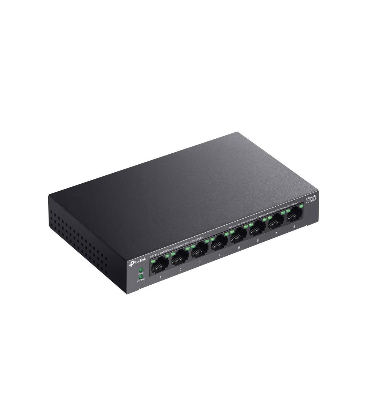 - TP-Link LiteWave 8-Port Gigabit Desktop Switch with 8-Port PoE+. Switch type: Unmanaged. Basic switching RJ-45 Ethernet ports type: Gigabit Ethernet (10/100/1000), Basic switching RJ-45 Ethernet ports quantity: 8. MAC address table: 4000 entries, Switchin